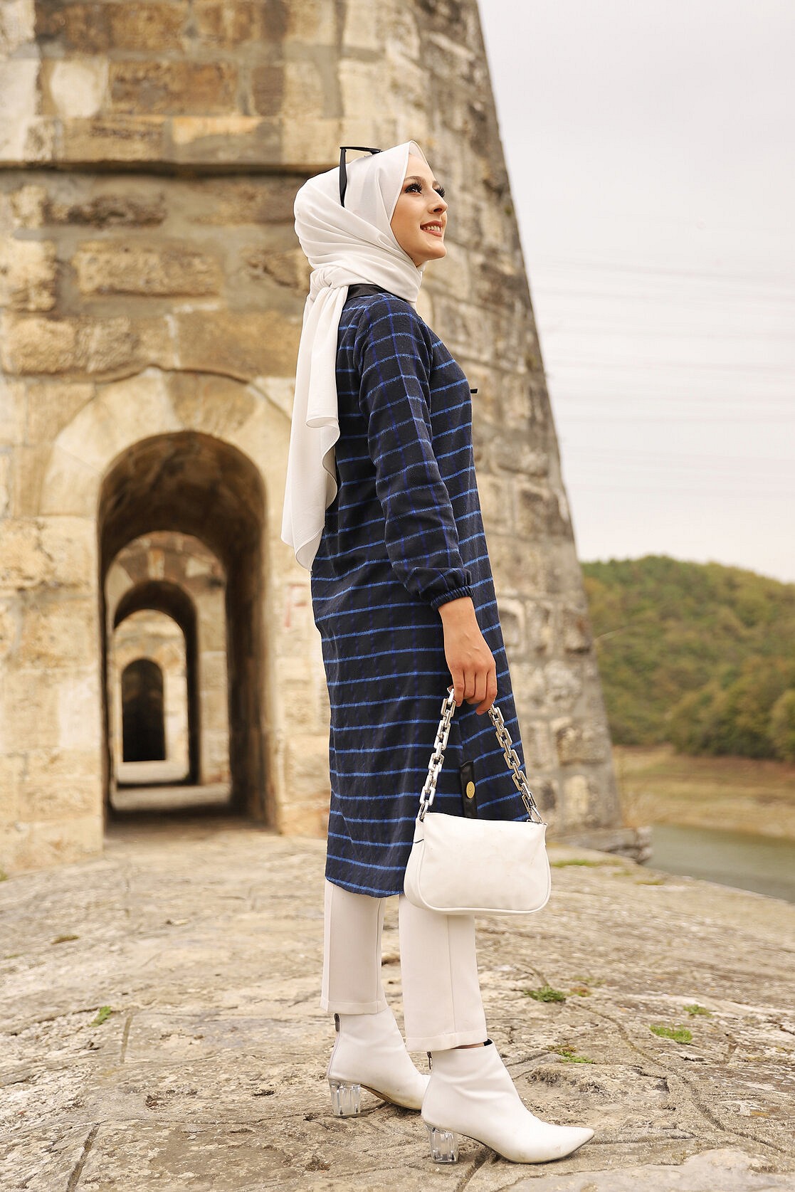 Tunique longue à rayures (Vetement femme voilée) - Couleur noir et bleu - REF. 35289 (16.90 €)