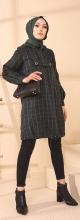 Tunique à carreaux (Vêtement Hijab Automne-Hiver) - Couleur anthracite avec rayures vertes - REF. 36214 (25.00 €)