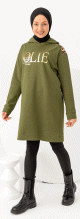 Tunique décontractée ample pour femme type sweat-shirt avec capuche et imprimé doré - Couleur kaki - REF. 37770 (19.90 €)