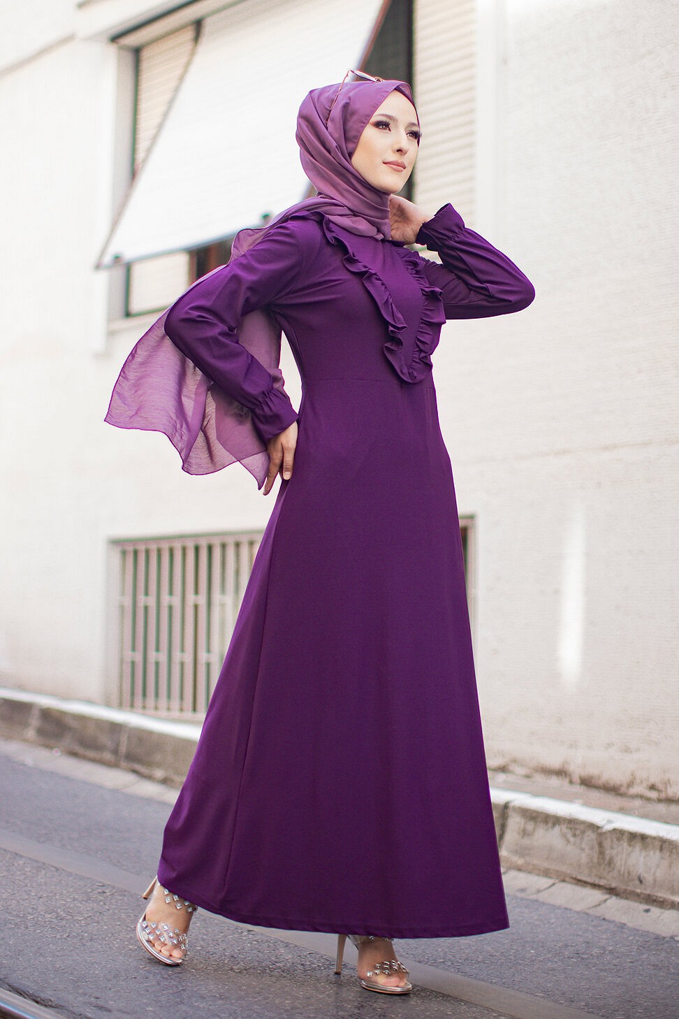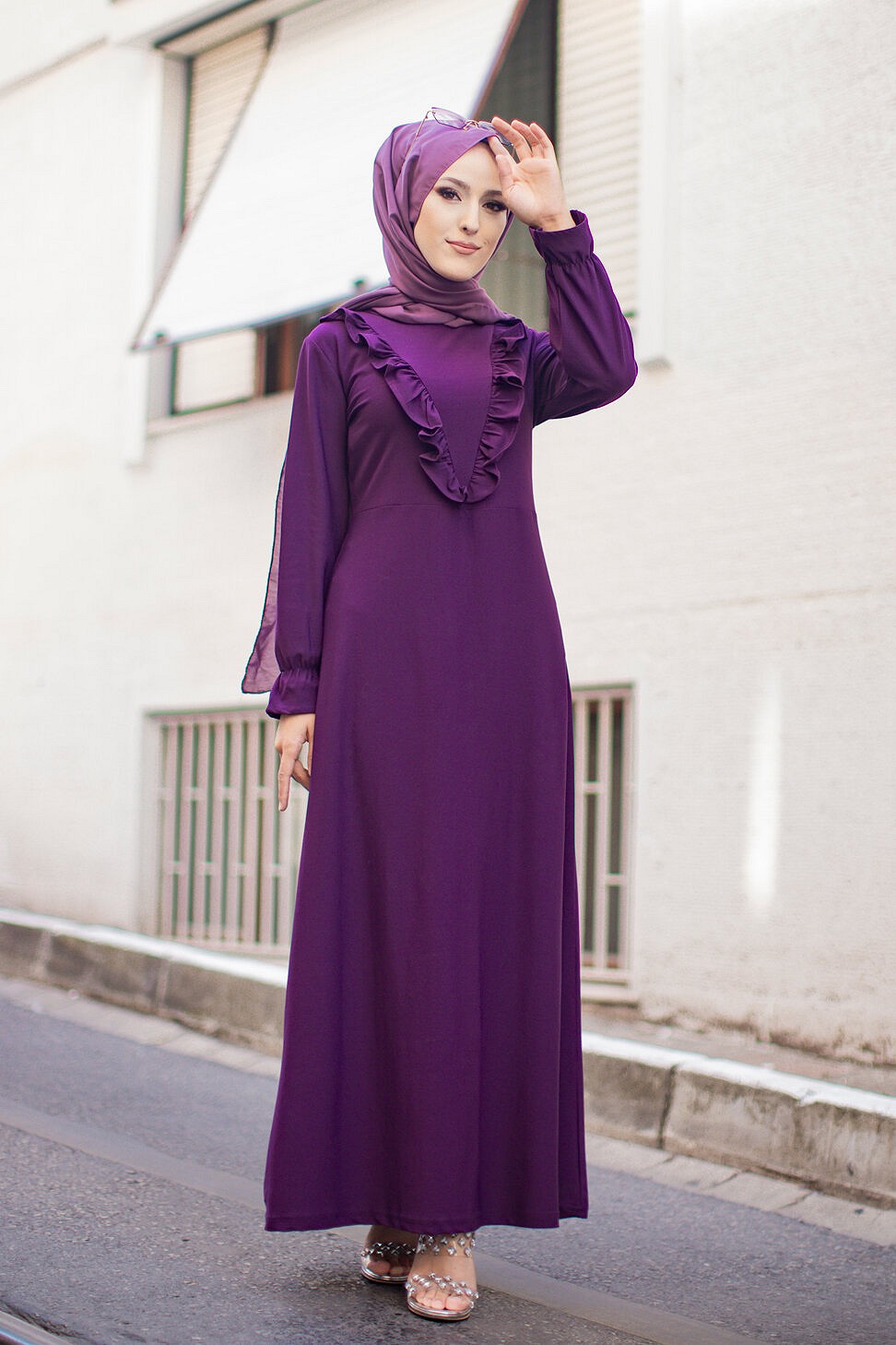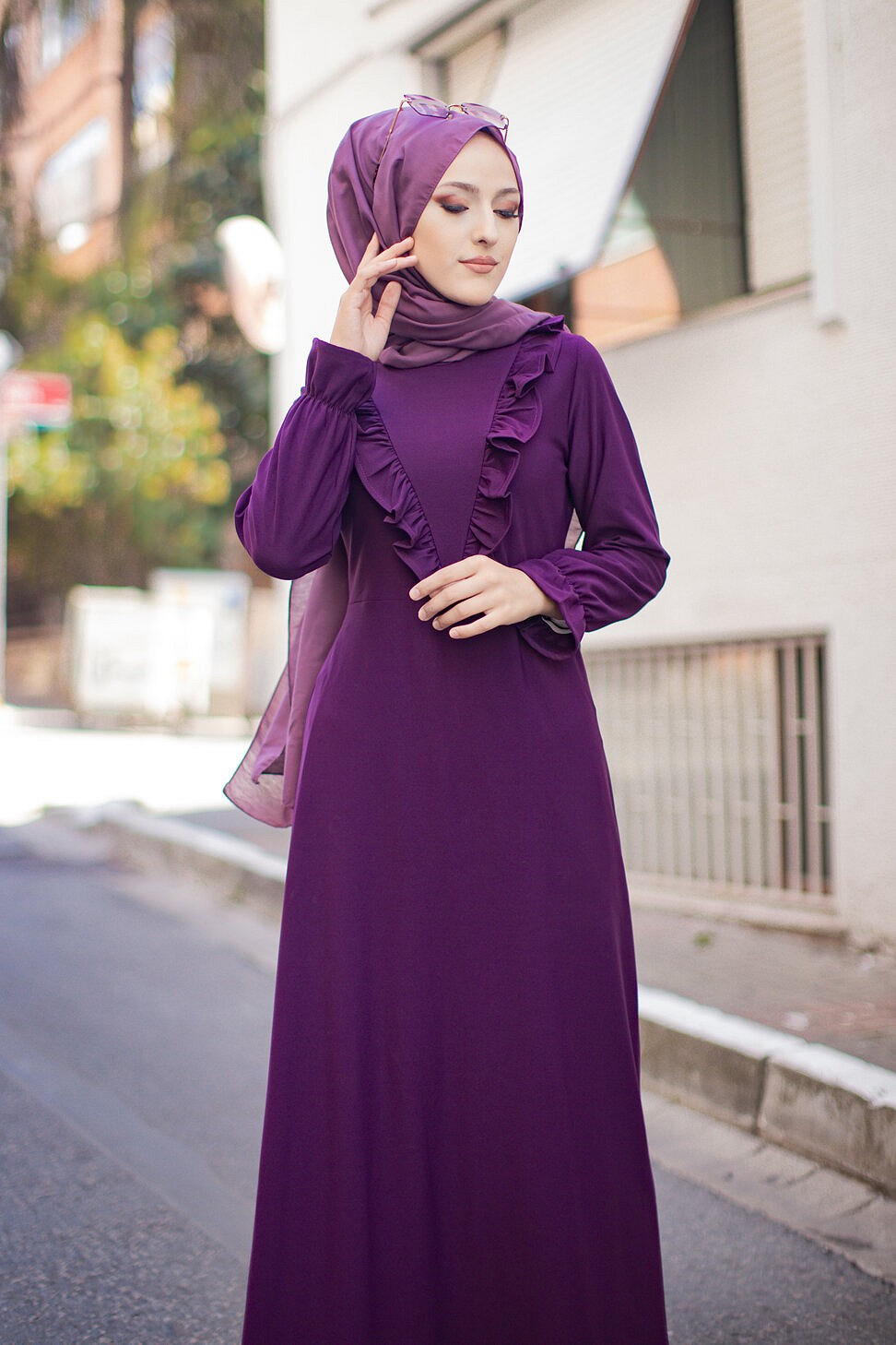 Robe longue bordee dun volant pour femme (Vetement style habille pour hijab) - Couleur violet