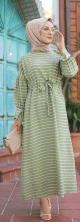 Robe longue à rayures avec ceinture pour femme voilée - Couleur Vert amande - REF. 33211 (29.90 €)