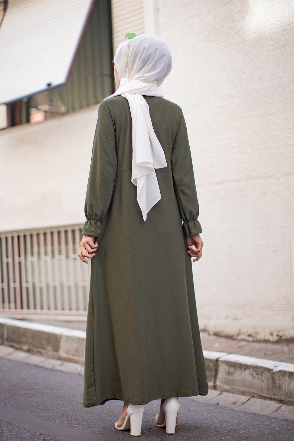 Robe longue bordee dun volant pour femme (Vetement style habille pour hijab) - Couleur kaki