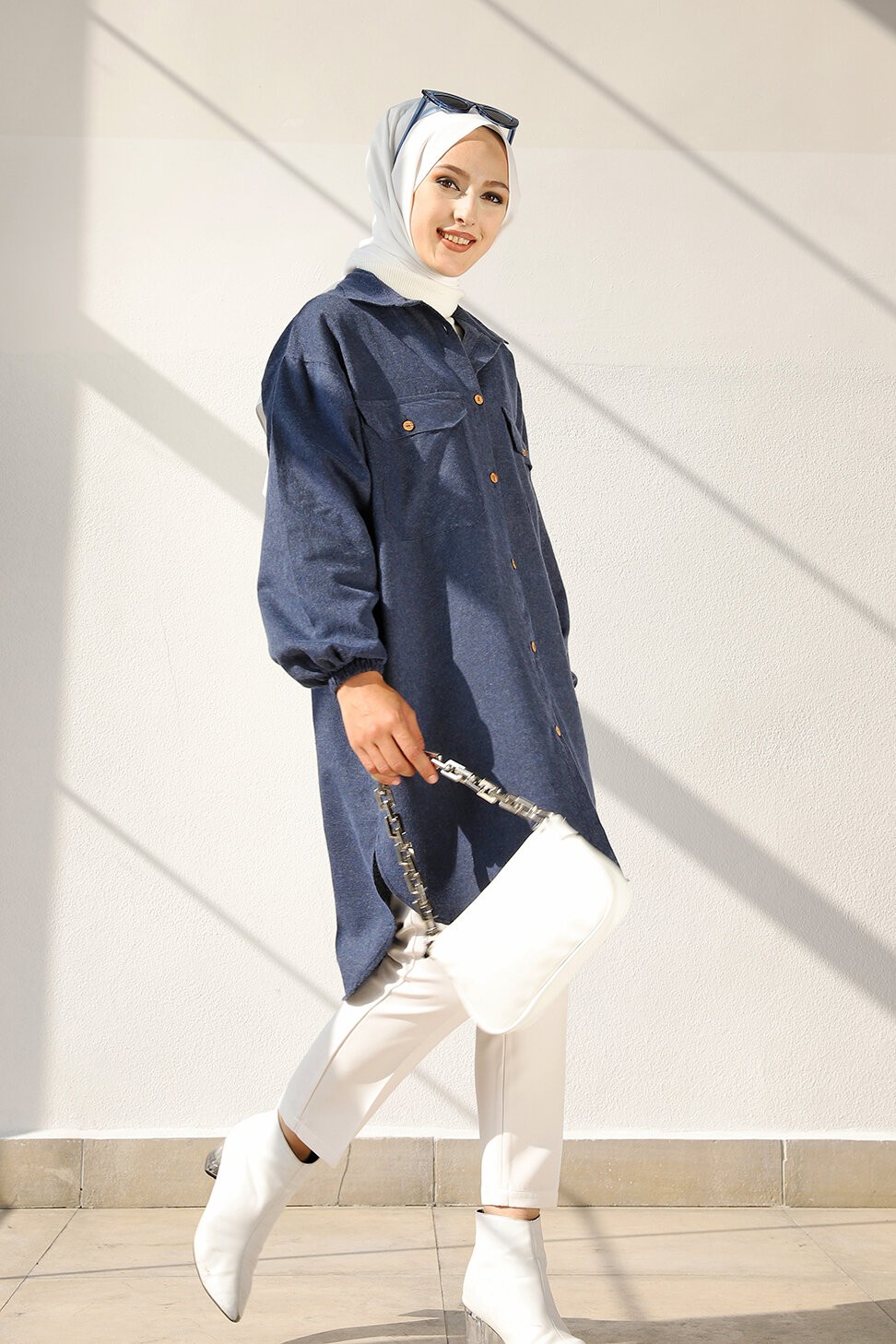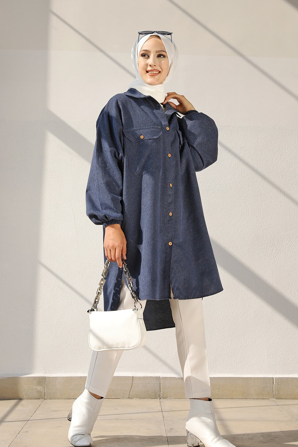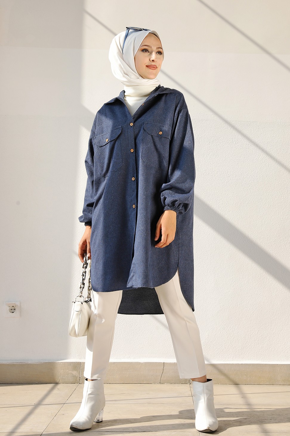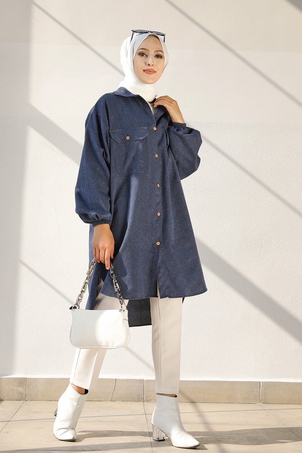 Chemise-Tunique ample pour femme (Vetement Hijab 2025) - Couleur bleu indigo