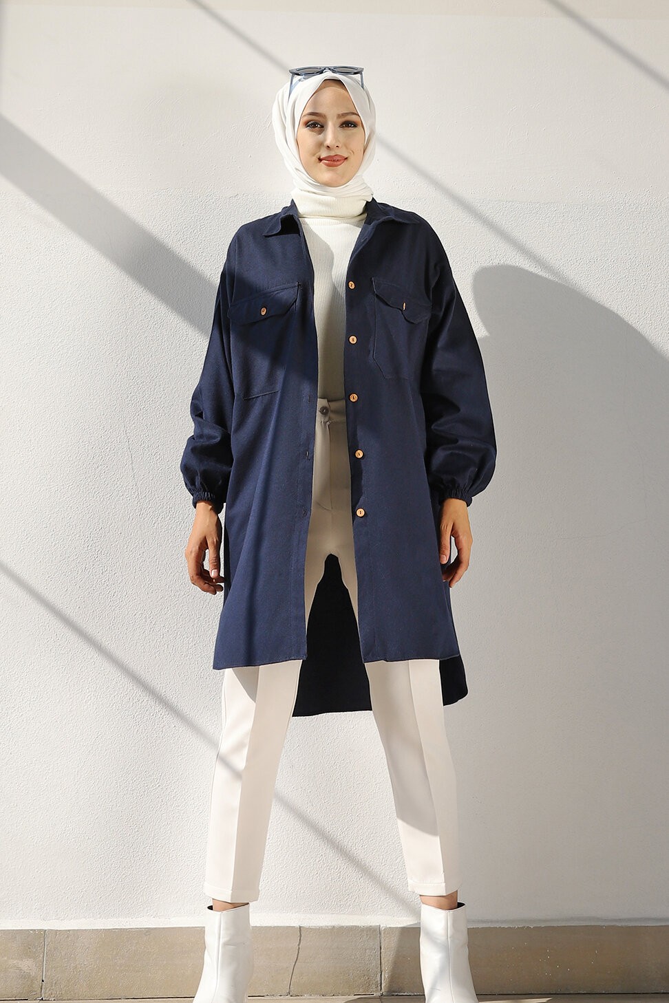 Tunique longue boutonnée chic pour femme (Vêtement style habillé pour hijab) - Couleur bleu marine - REF. 36362 (29.90 €)