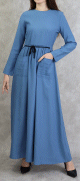 Robe bretelle (Salopette ) et sa ceinture assortie pour femme (Vetement hijab en ligne) - Couleur anthracite (gris foncé chiné) - REF. 33848 (25.00 €)