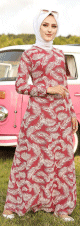 Robe longue imprimée motifs feuilles (Mode musulmane) - Couleur rose framboise - REF. 33129 (28.00 €) - En Promotion à 22.90 €