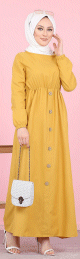 Robe longue boutonnée (Vetement mastour pour femme voilée) - Couleur jaune moutarde - REF. 34616 (24.90 €) - En Promotion à 19.90 €