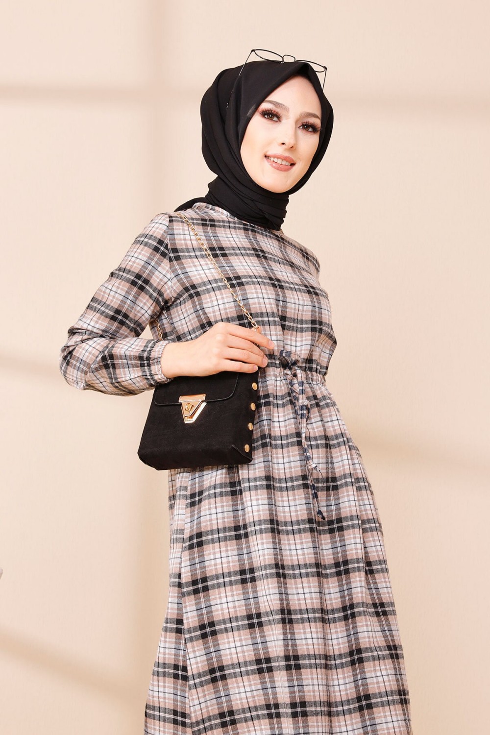 Ensemble Robe à carreaux avec sac à main assorti - Couleur vert émeraude - REF. 35694 (35.00 €) - En Promotion à 24.90 €