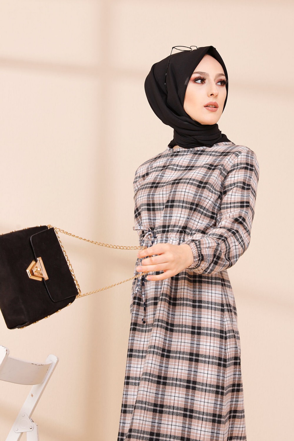 Robe longue en cachemire (Vetement hijab - Mode islamique) - Couleur saumon et noir