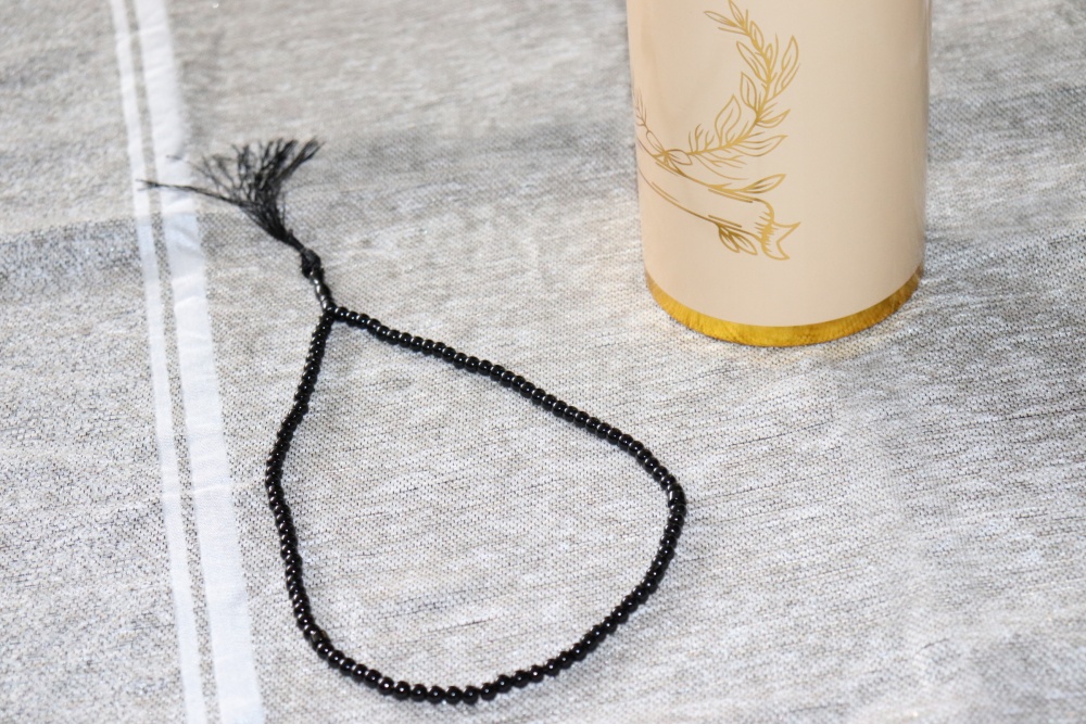 - Un Chapelet (Sebha/Tasbih) 99 perles, de qualité supérieure, avec des perles et décoration métallique dorée.