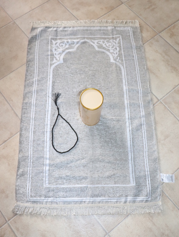 - Un tapis de prière adulte (grande taille 70 x 110 cm) avec frange.