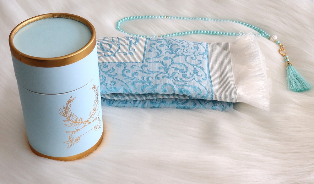 Pack cadeau : tapis de prière + subha (chapelet musulman) - Coffret Muslim Box - Couleur bleu ciel - REF. 36272 (14.90 €)
