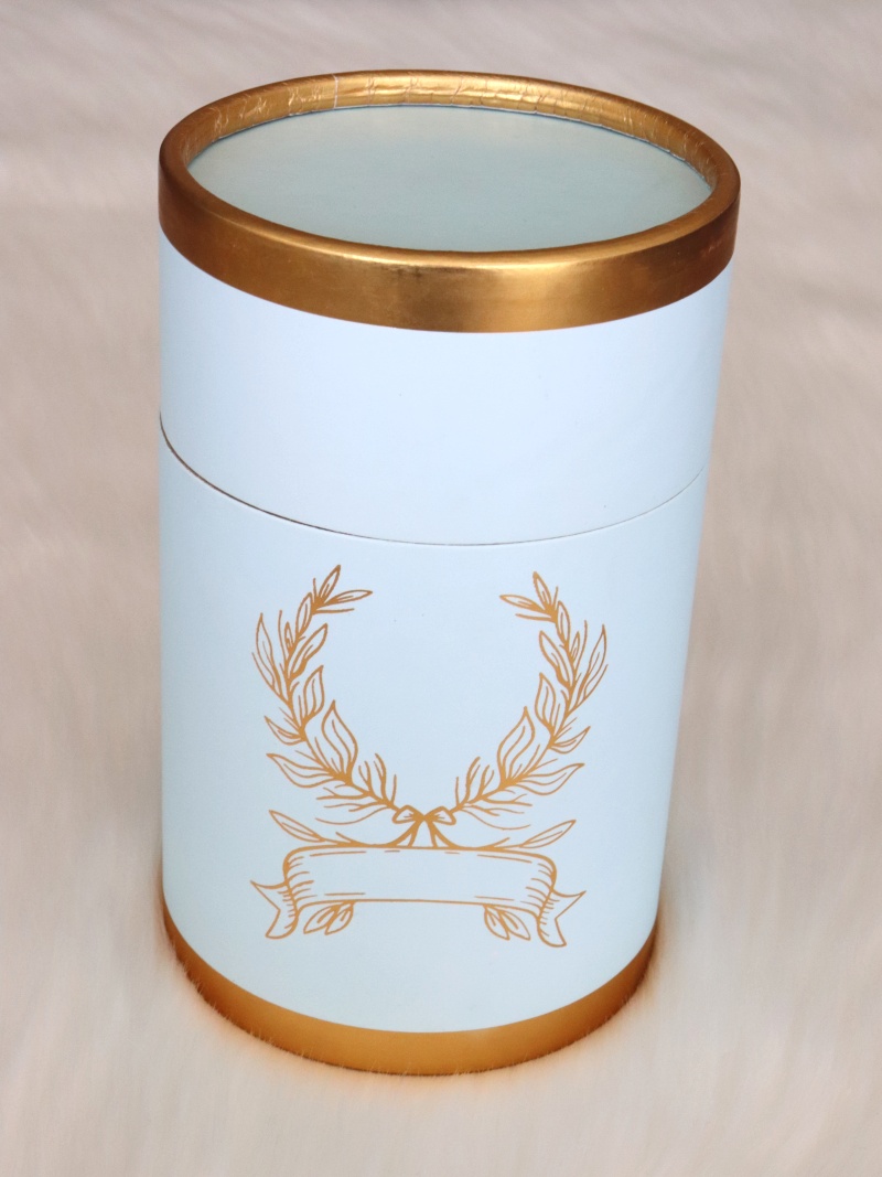 • Une jolie boite cadeau décorative et réutilisable avec motifs dorés.