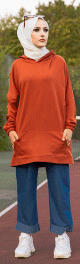 Sweat avec capuche pour femme inscription au dos "I am where are you?" (Tenue décontractée hiijab) - Couleur brique - REF. 34003 (18.00 €)