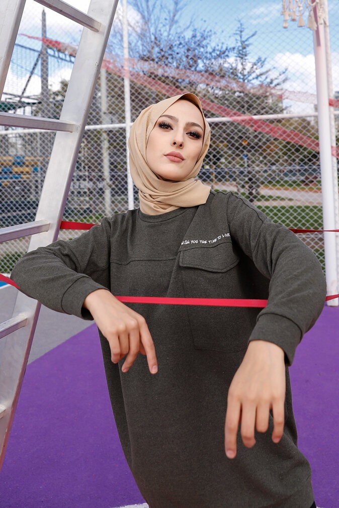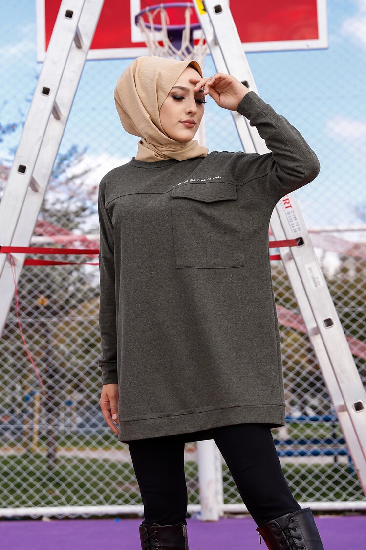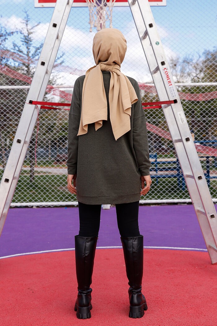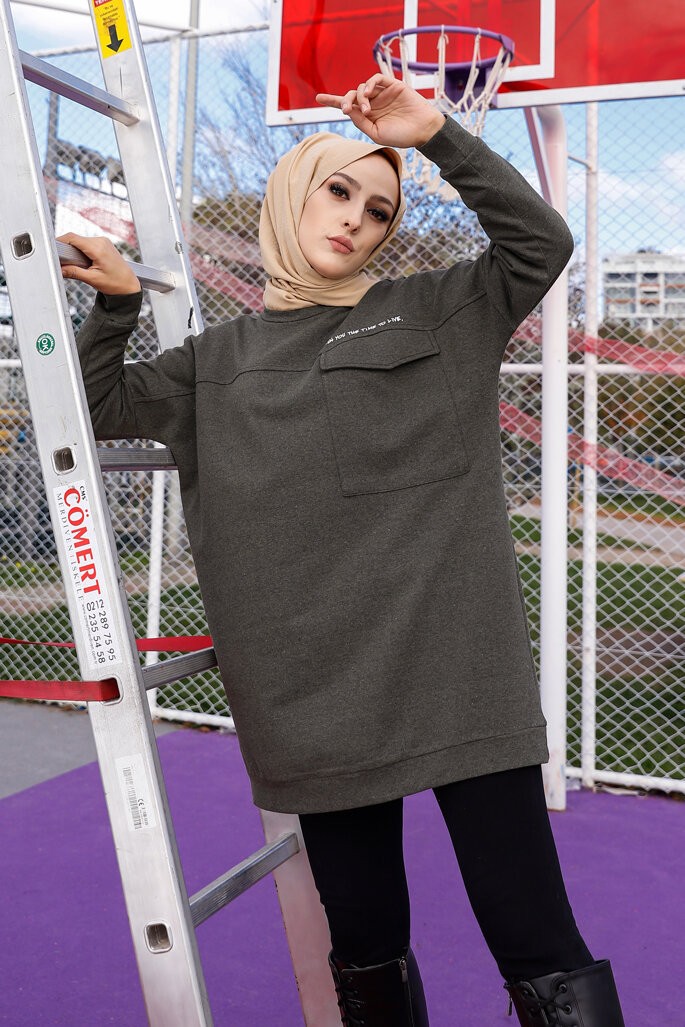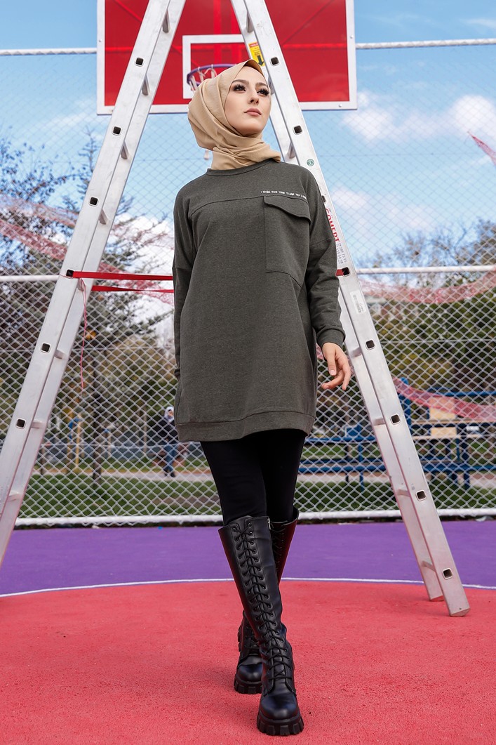 Tunique décontractée ample avec grande poche (Sweat femme Hijab) - Couleur kaki Vetement & Accessoire