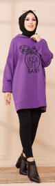 Tunique avec capuche imprimé "Like a cute baby" (Style Moderne Hijab) - Couleur mauve - REF. 37722 (26.00 €) - En Promotion à 19.90 €
