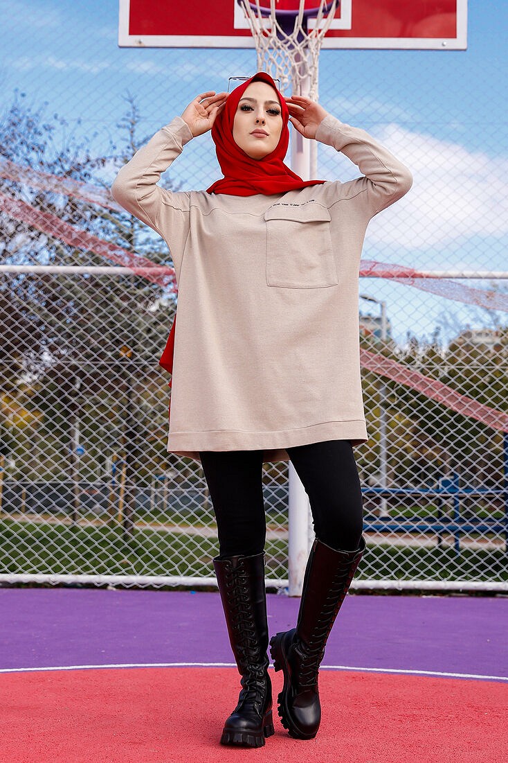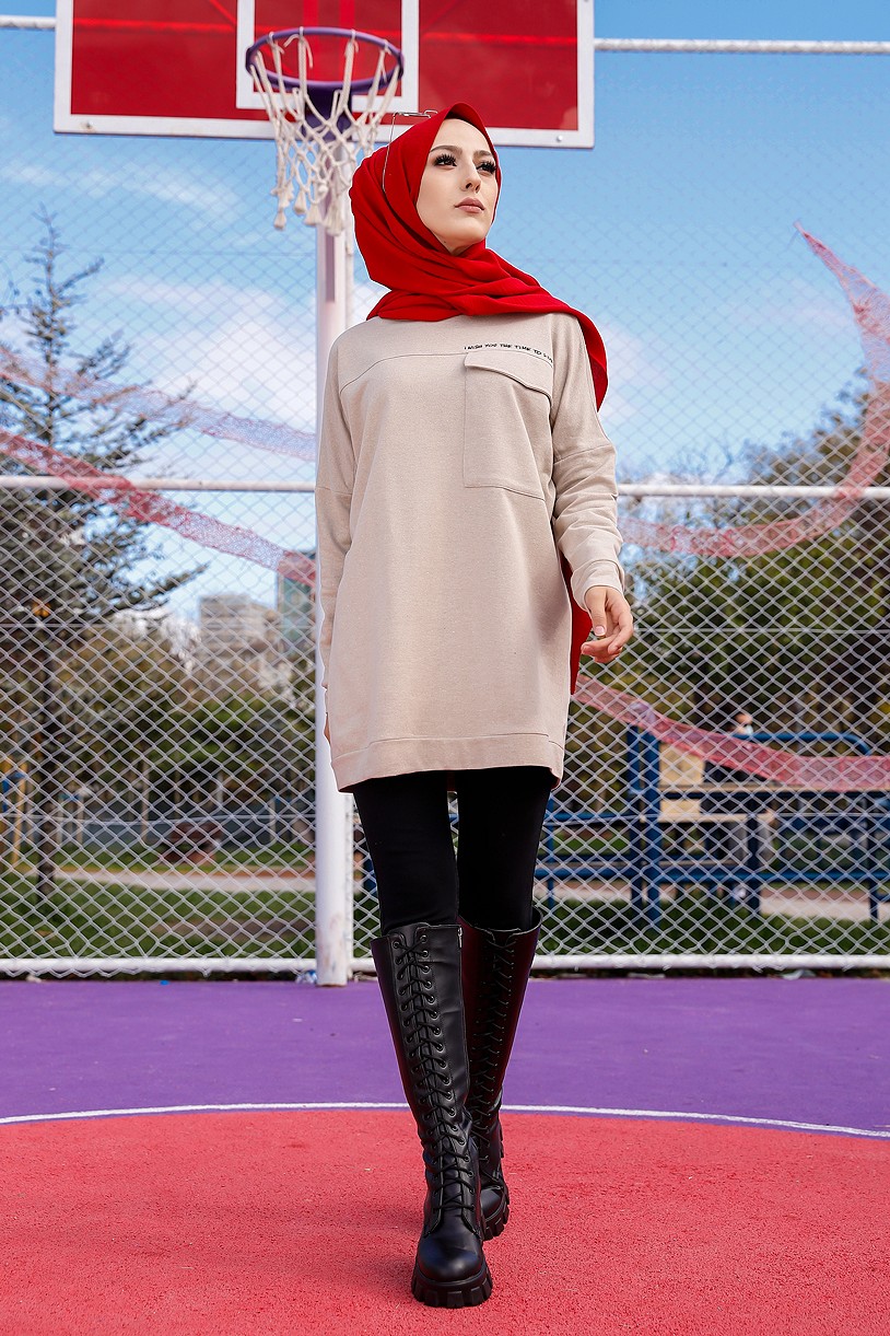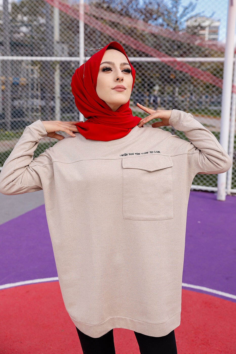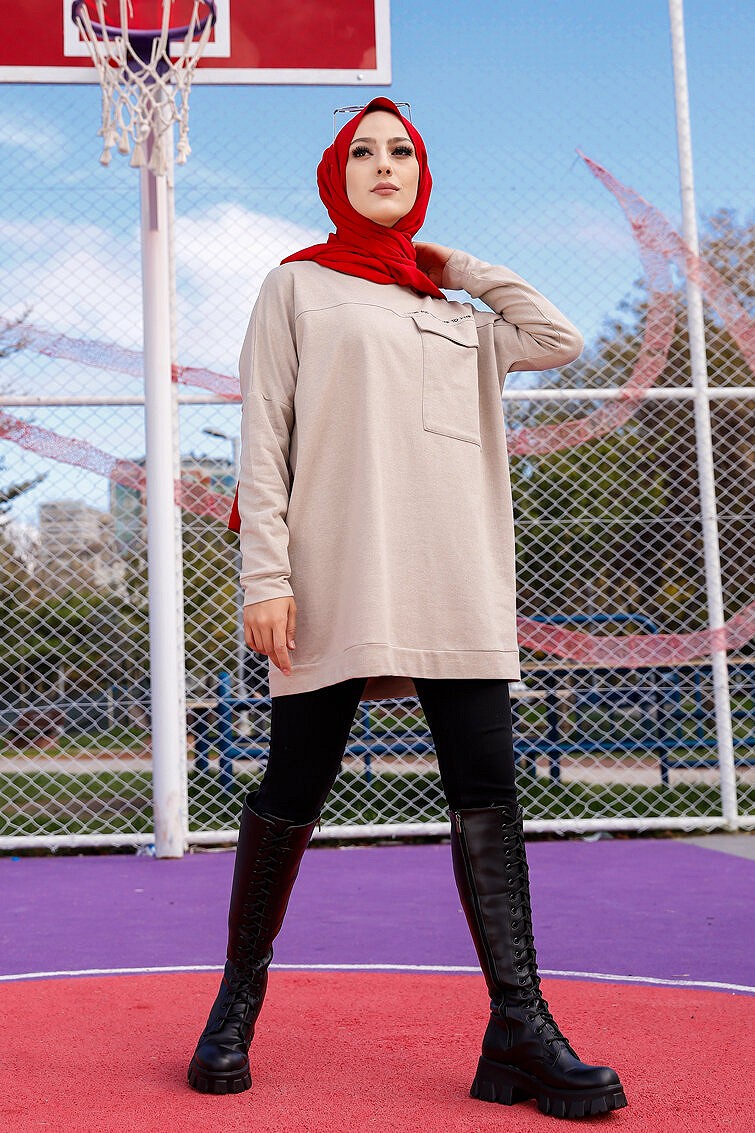 Tunique décontractée ample avec grande poche (Sweat femme Hijab) - Couleur roche Vetement & Accessoire