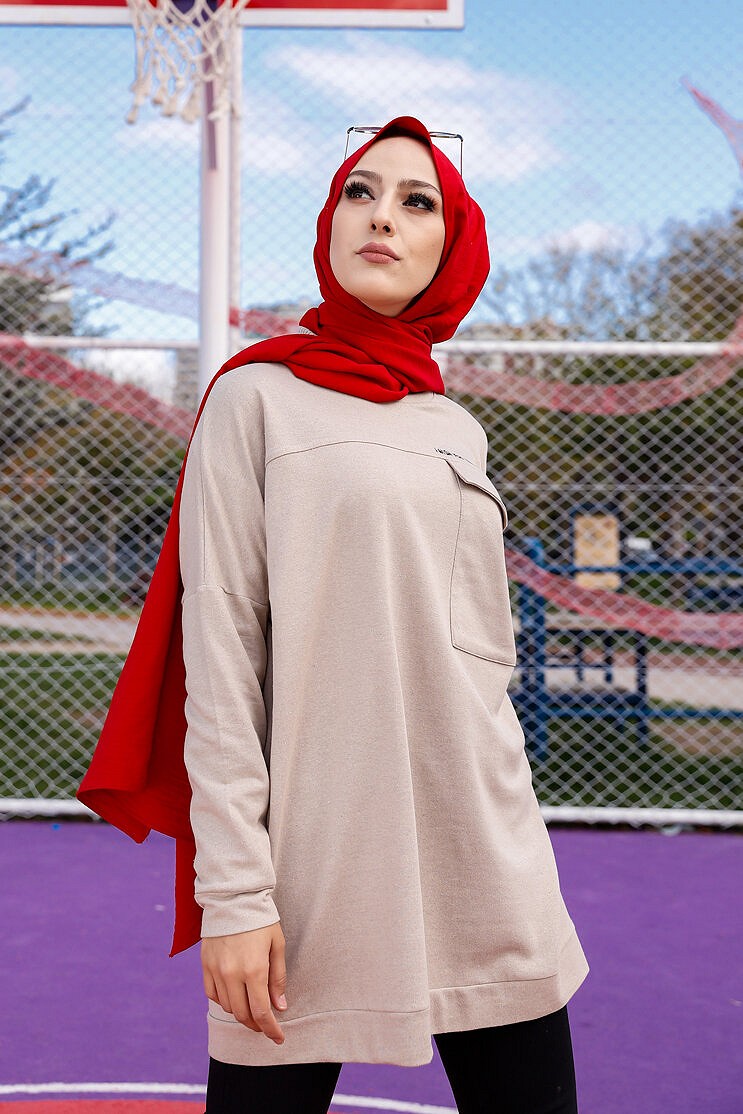Tunique decontractee ample avec grande poche (Sweat femme Hijab) - Couleur roche