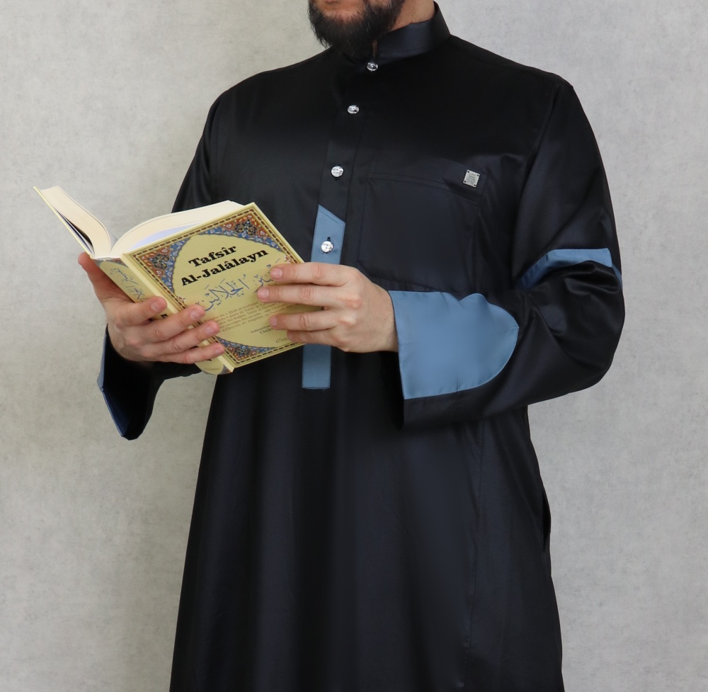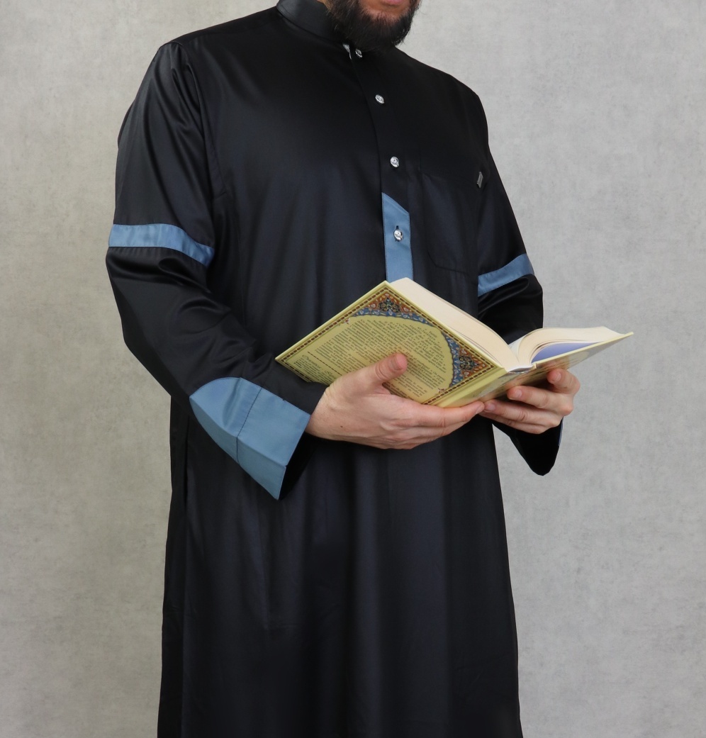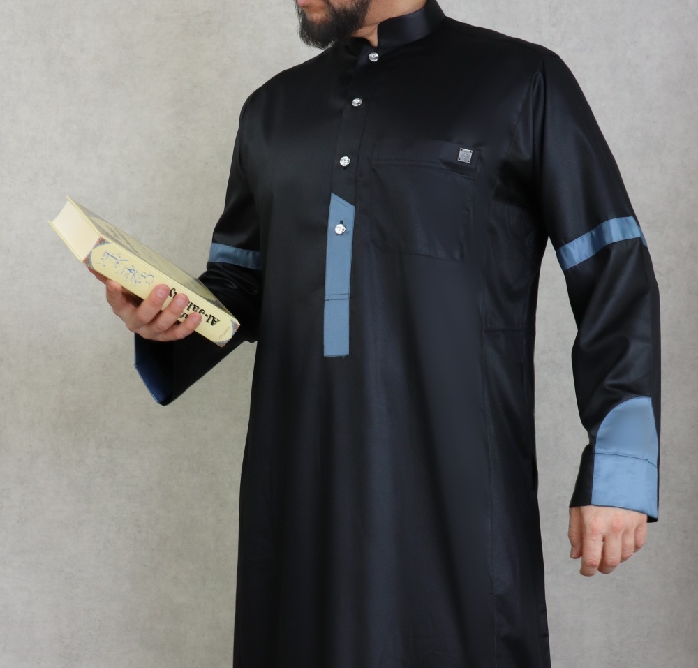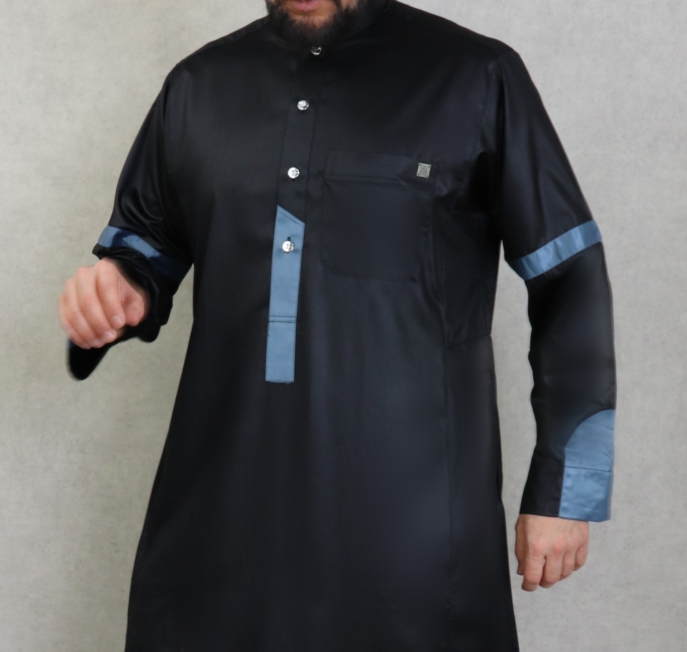 Qamis satine moderne de luxe - Couleur noir et bleu