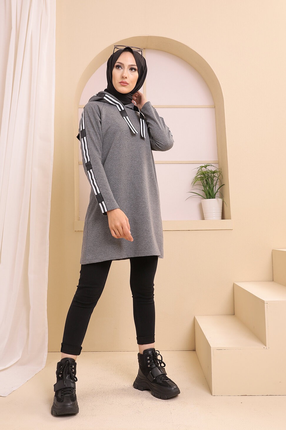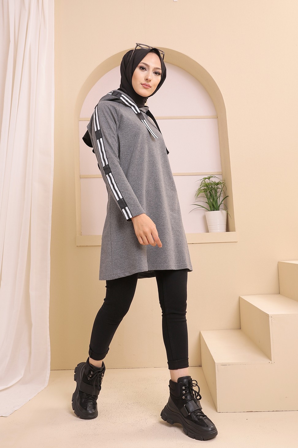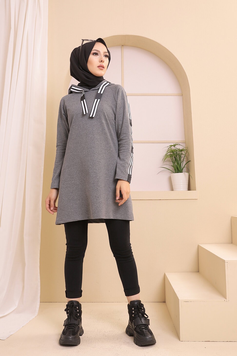 Tunique type sweat-shirt à capuche (Vêtement décontracté et sport pour hijab) - Couleur anthracite - REF. 38290 (22.00 €)