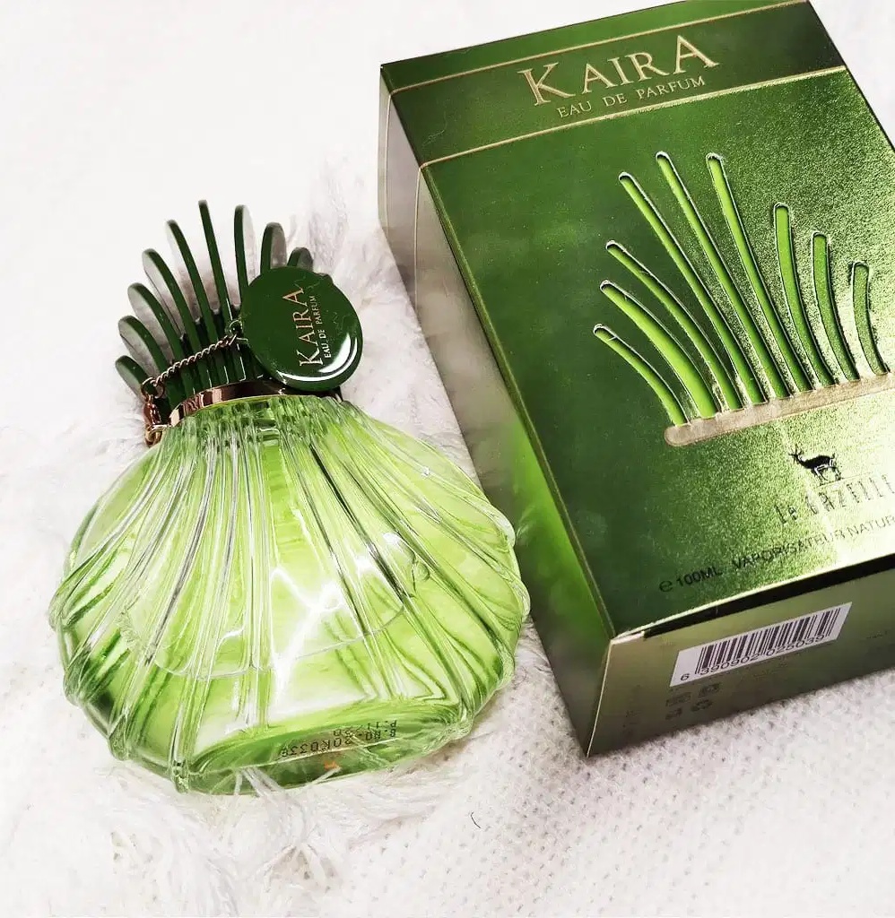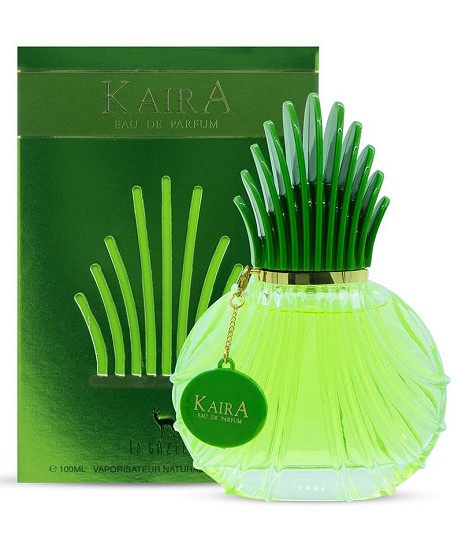 Kaira Gold Green by Le Gazelle Eau de Parfum 100 ml Parfum Ambré Oriental pour Homme et Femme Les notes de tête sont mandarine, rose. Les notes de cœur sont caramel, jasmin. Les notes de fond sont ambre sec, boisé, musc, vanille.