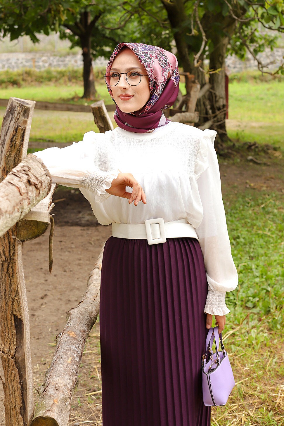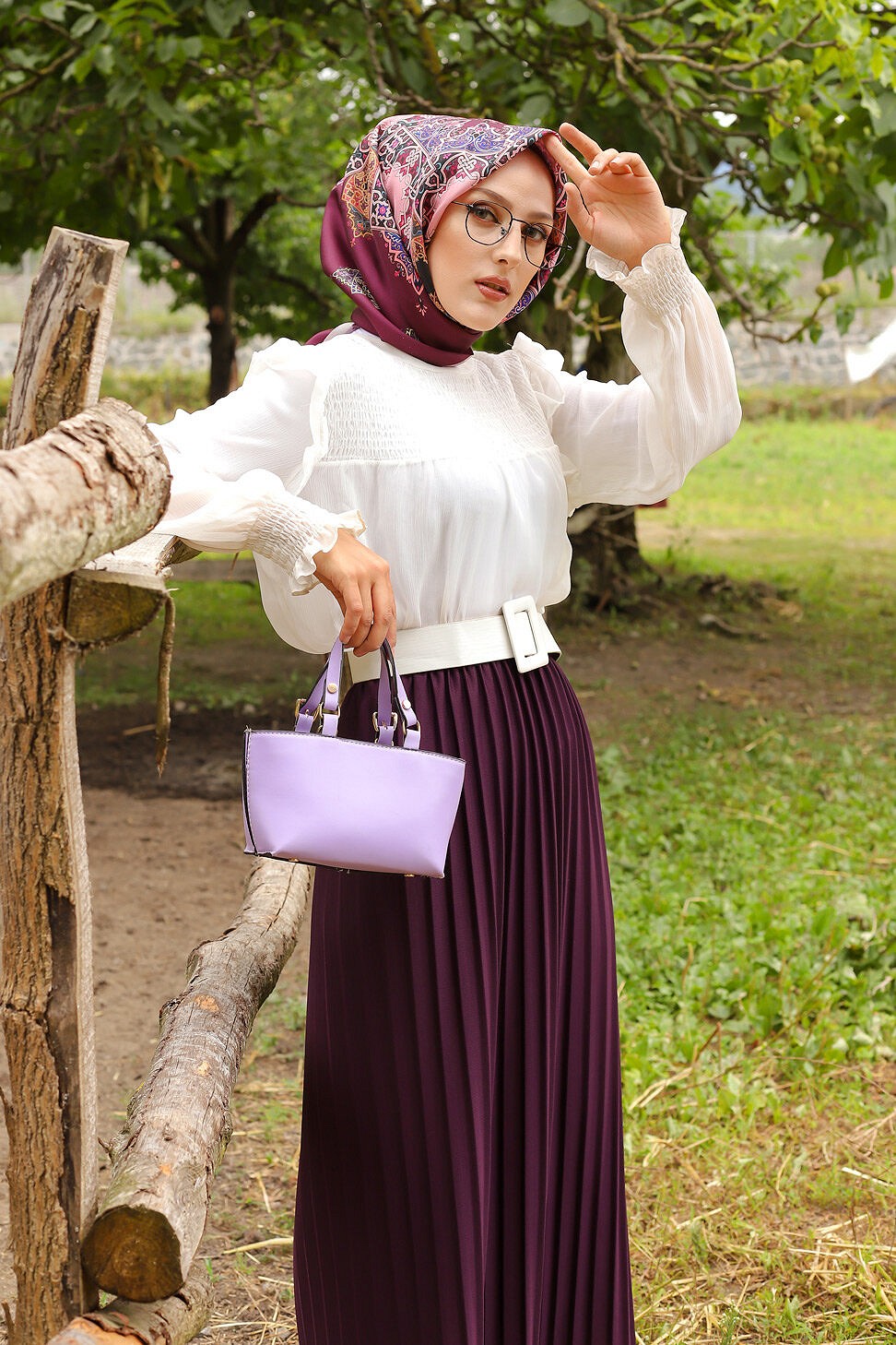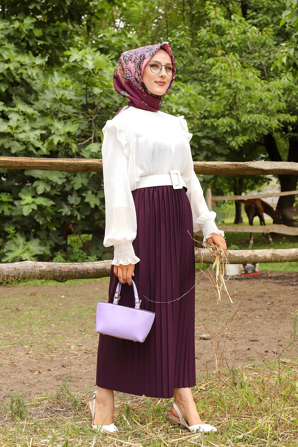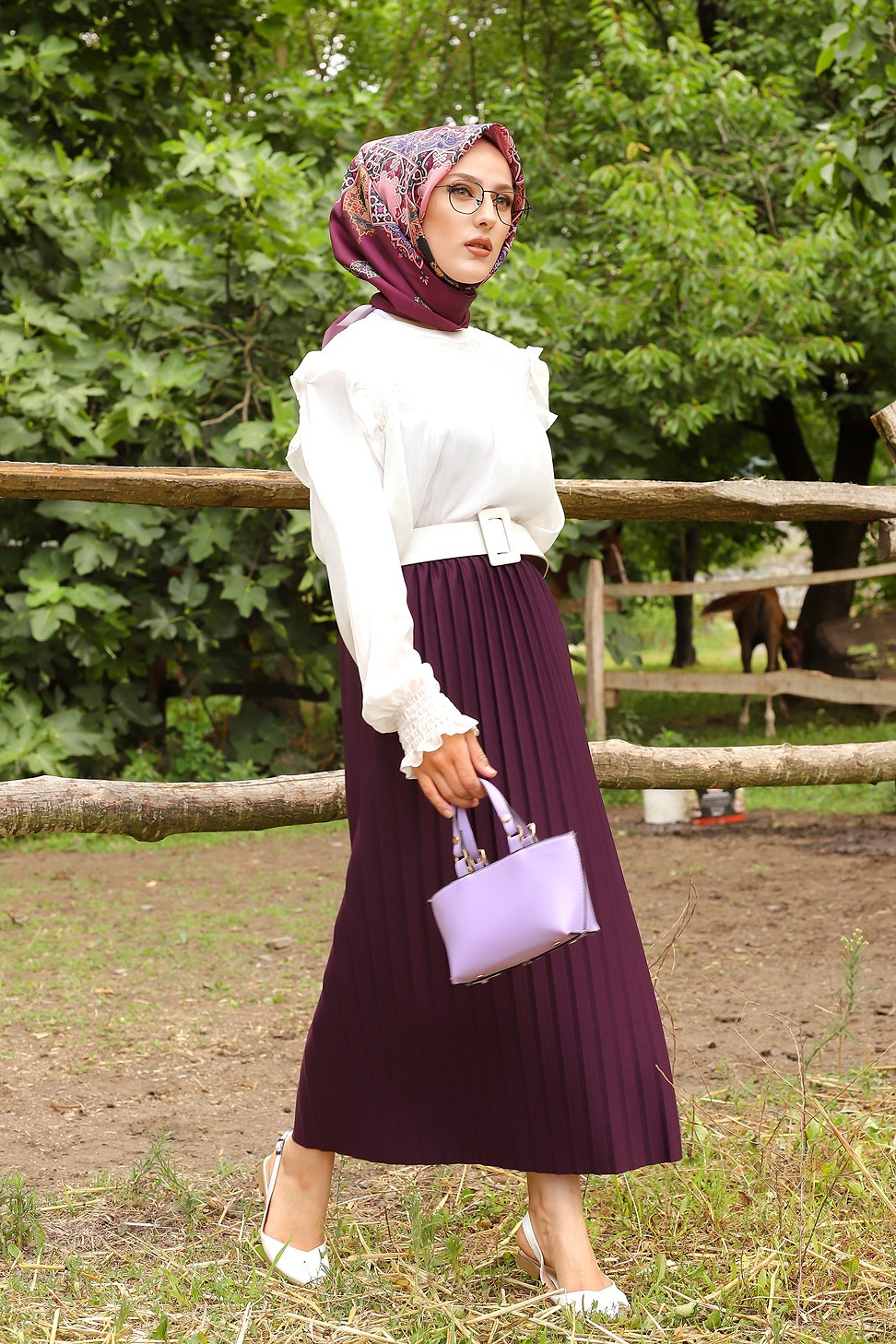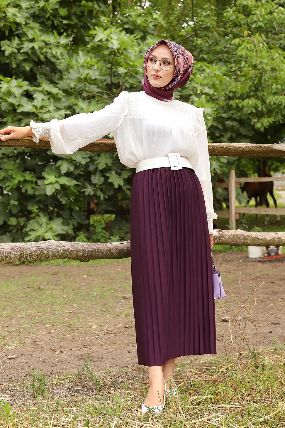 Jupe plissée pour femme (Boutique vêtement turque en ligne) - Couleur prune Vetement & Accessoire