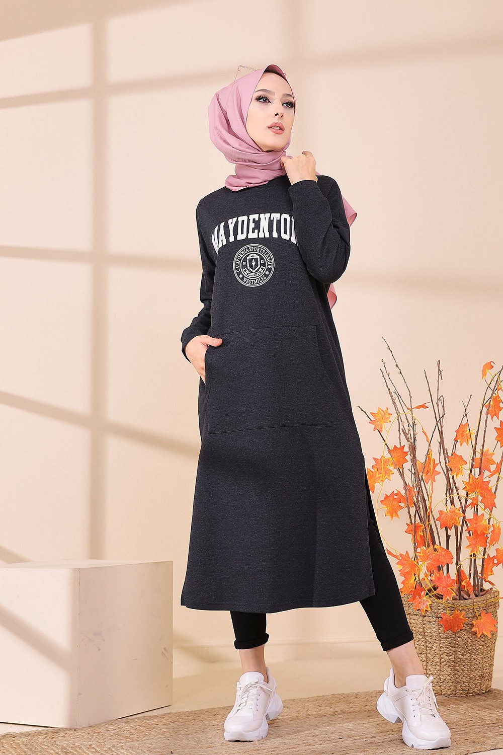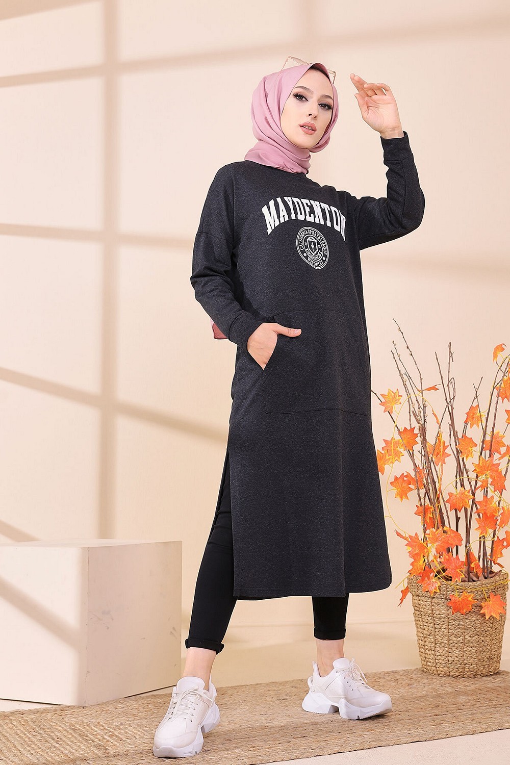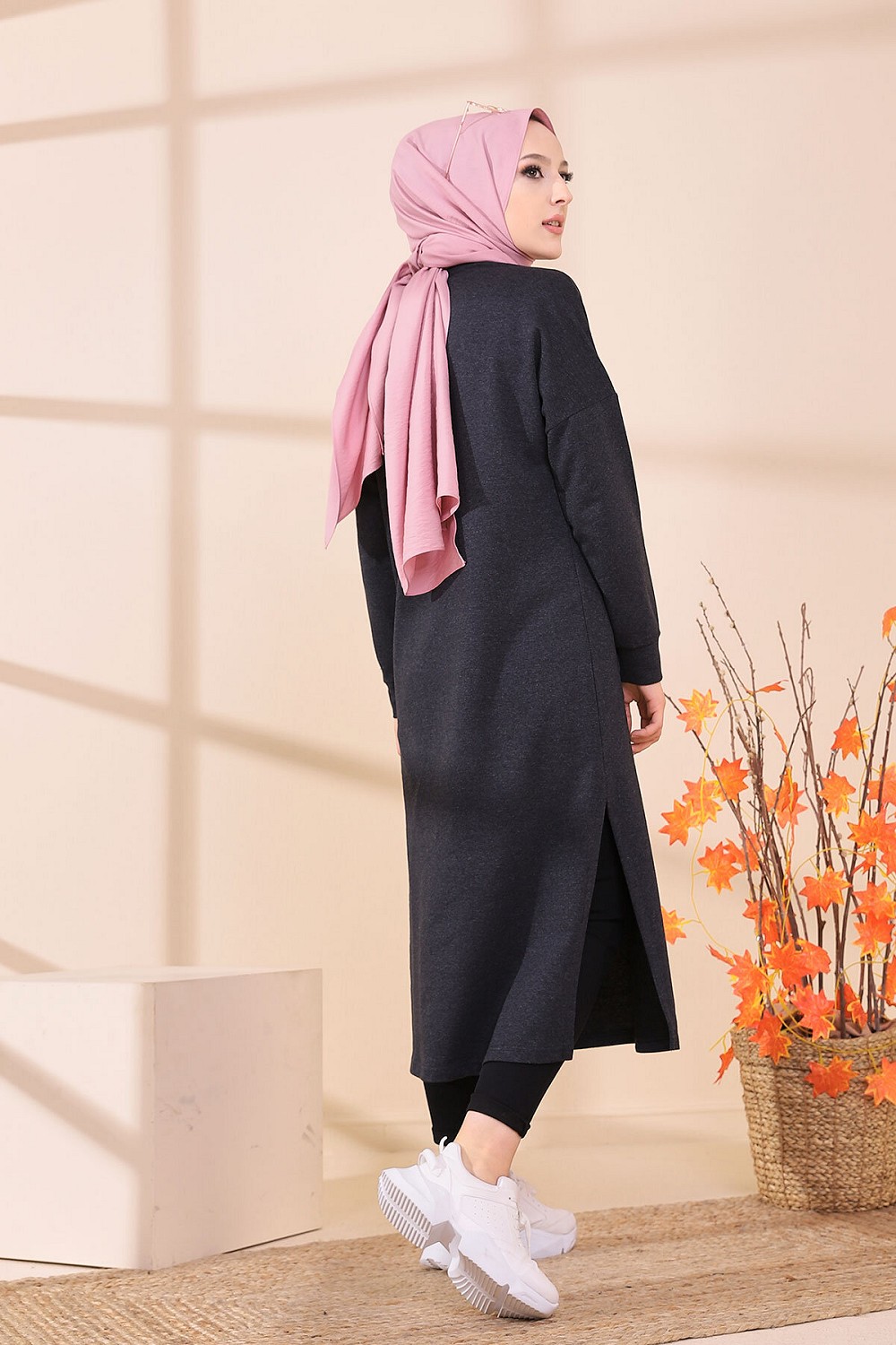 Robe - Tunique longue pour femme (Casual Hijab Outfit) - Couleur anthracite Vetement & Accessoire