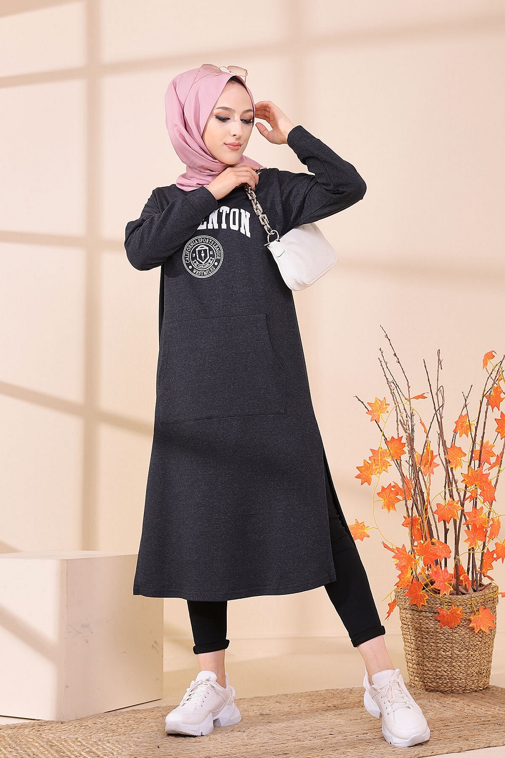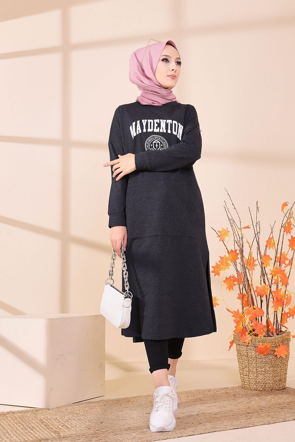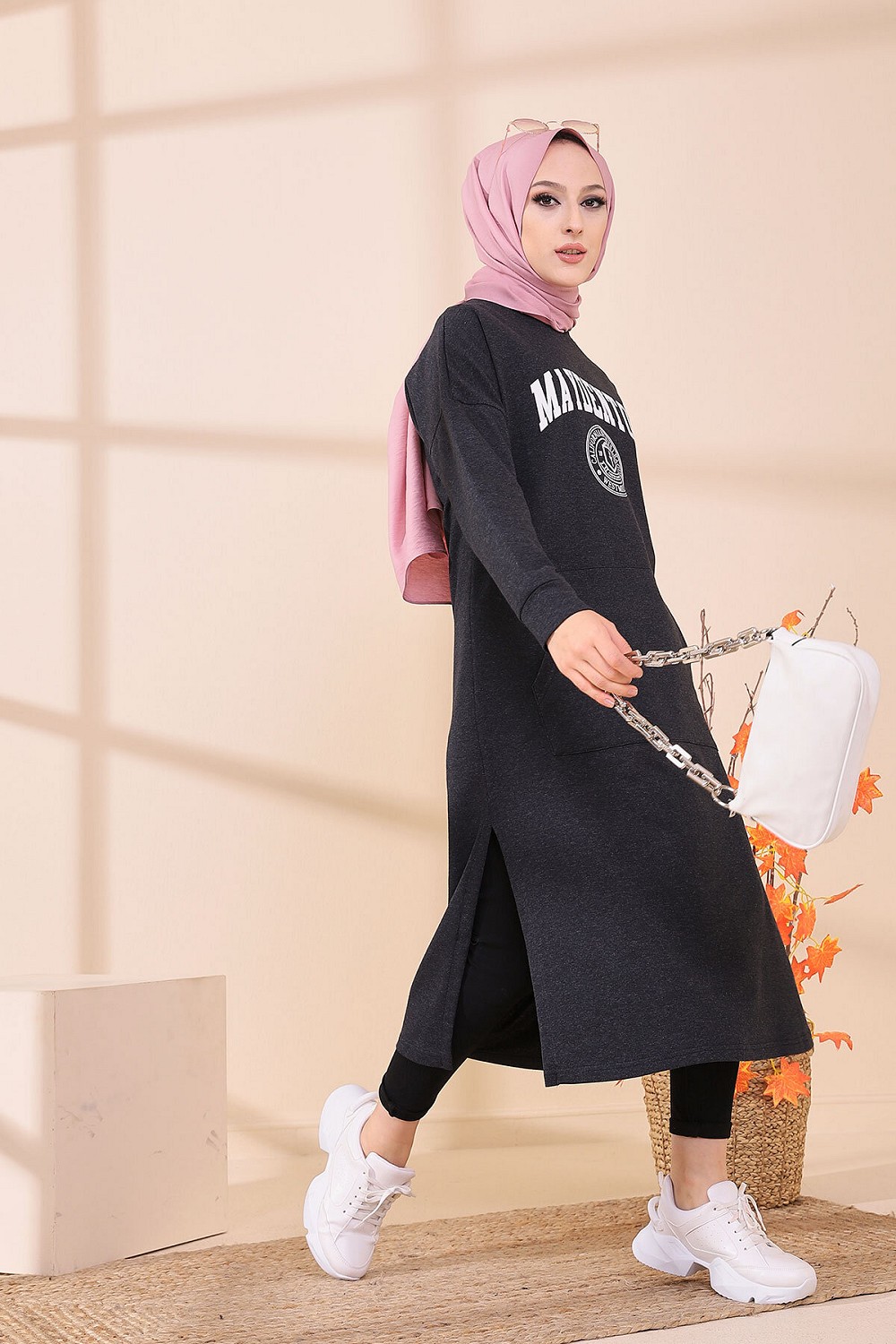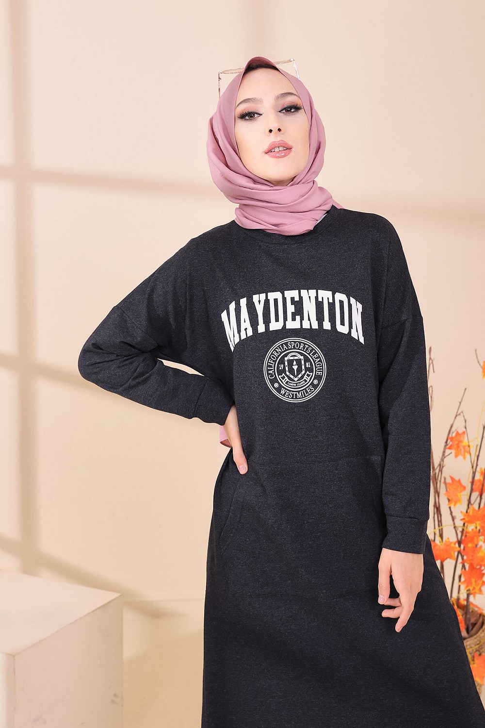Robe - Tunique longue pour femme (Casual Hijab Outfit) - Couleur anthracite Vetement & Accessoire
