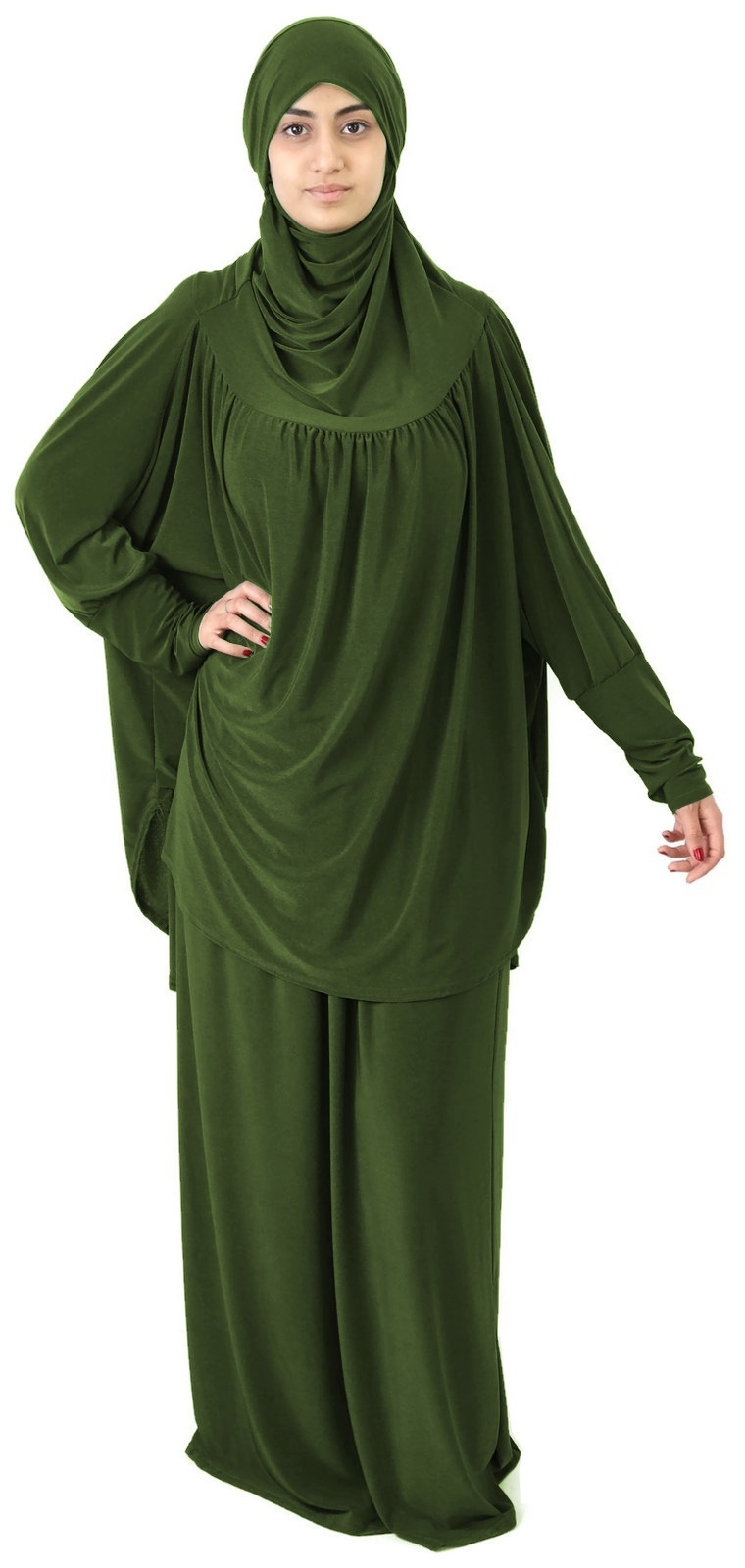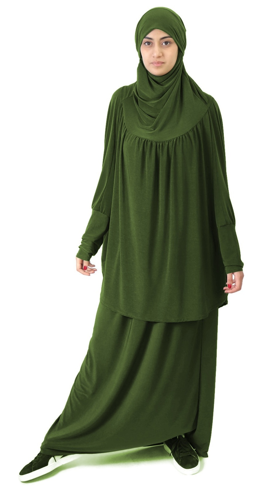 Jilbab Sport ample deux pièces (Cape + Jupe) pour femme - Marque Best Ummah - Couleur vert kaki Vetement & Accessoire
