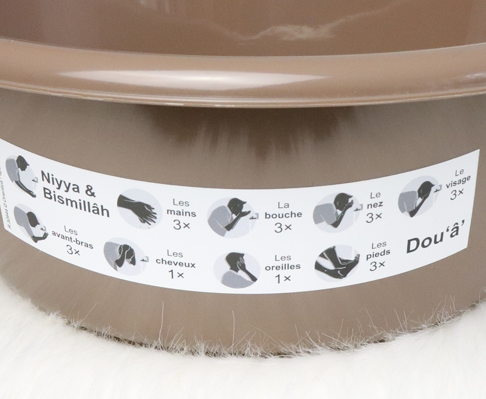 Récipient pédagogique pour faire l'ablution mineure (woudou) avec illustration des différentes étapes - Couleur Marron - REF. 35478 (3.90 €)