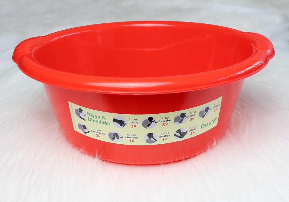 Très pratique et utilisable pour toute la famille (adulte et enfant) pour faire al-woudou' sans gaspillage d'eau.