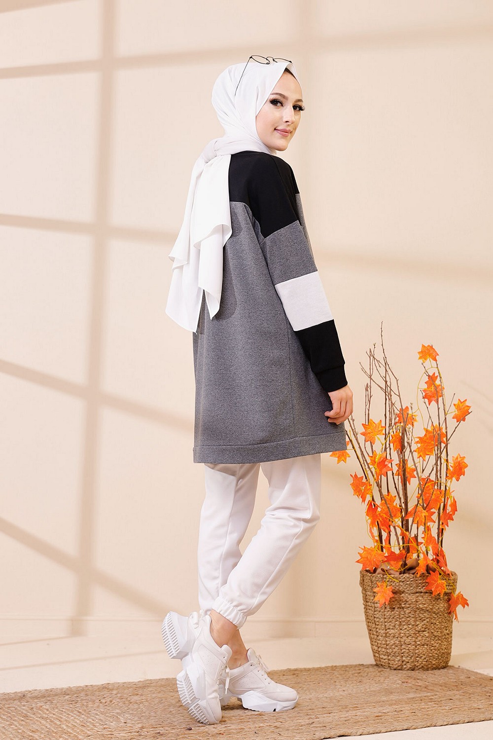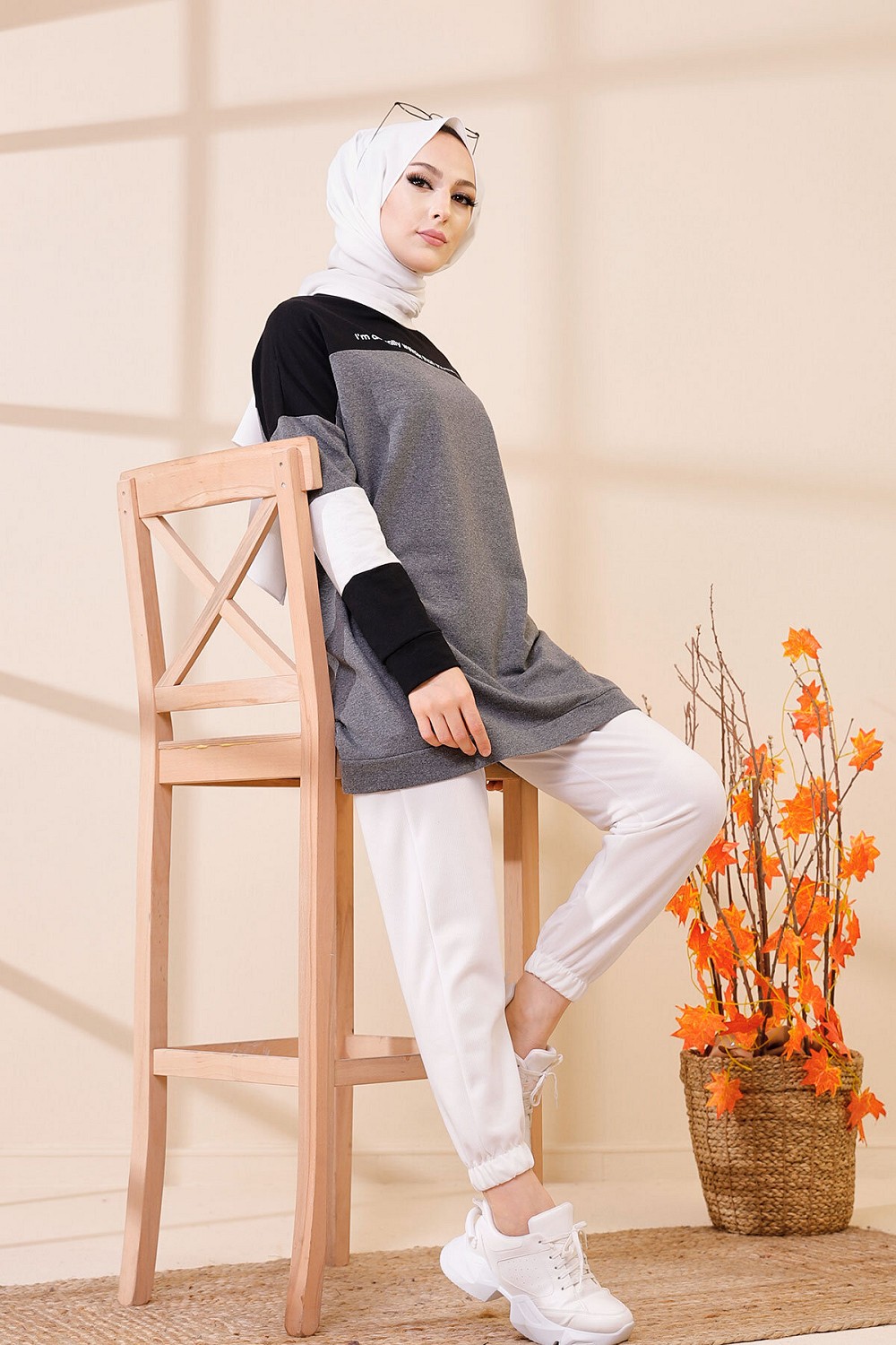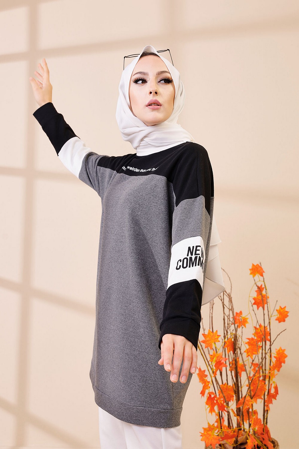 Tunique ample style decontracte et sport (Sweat Hijab moderne) - Couleur gris fonce