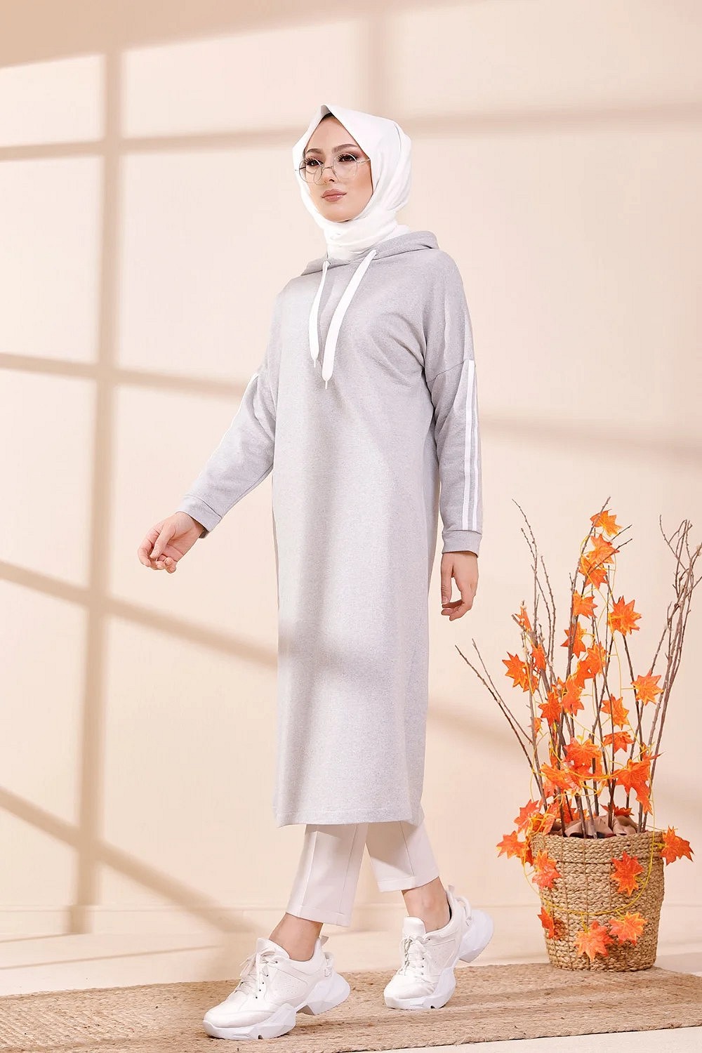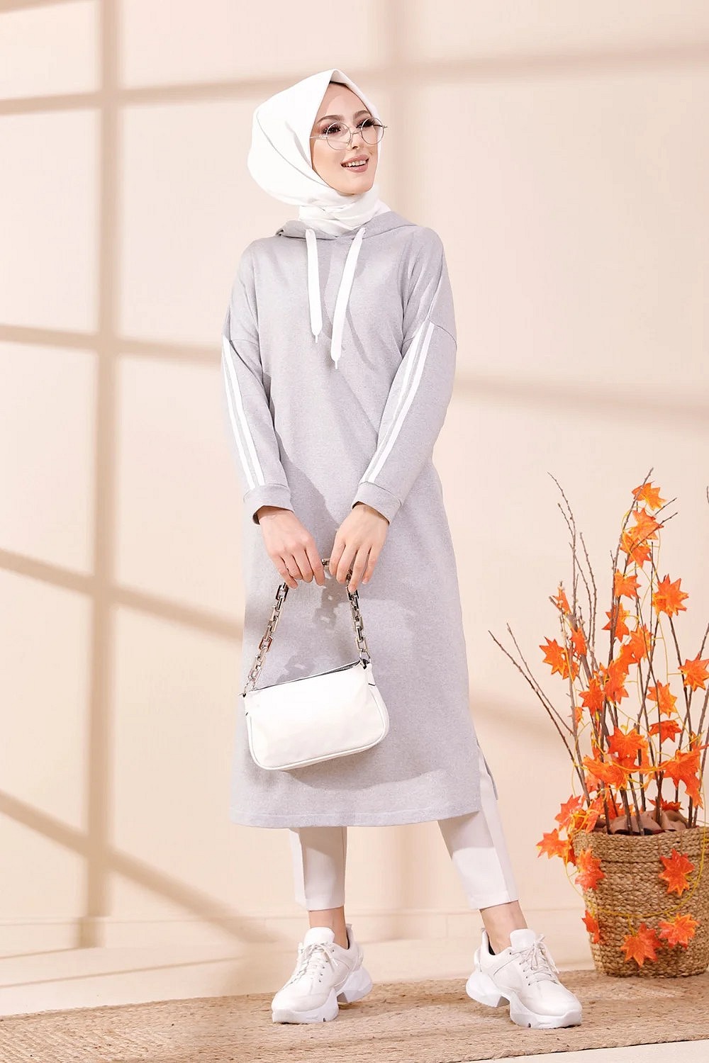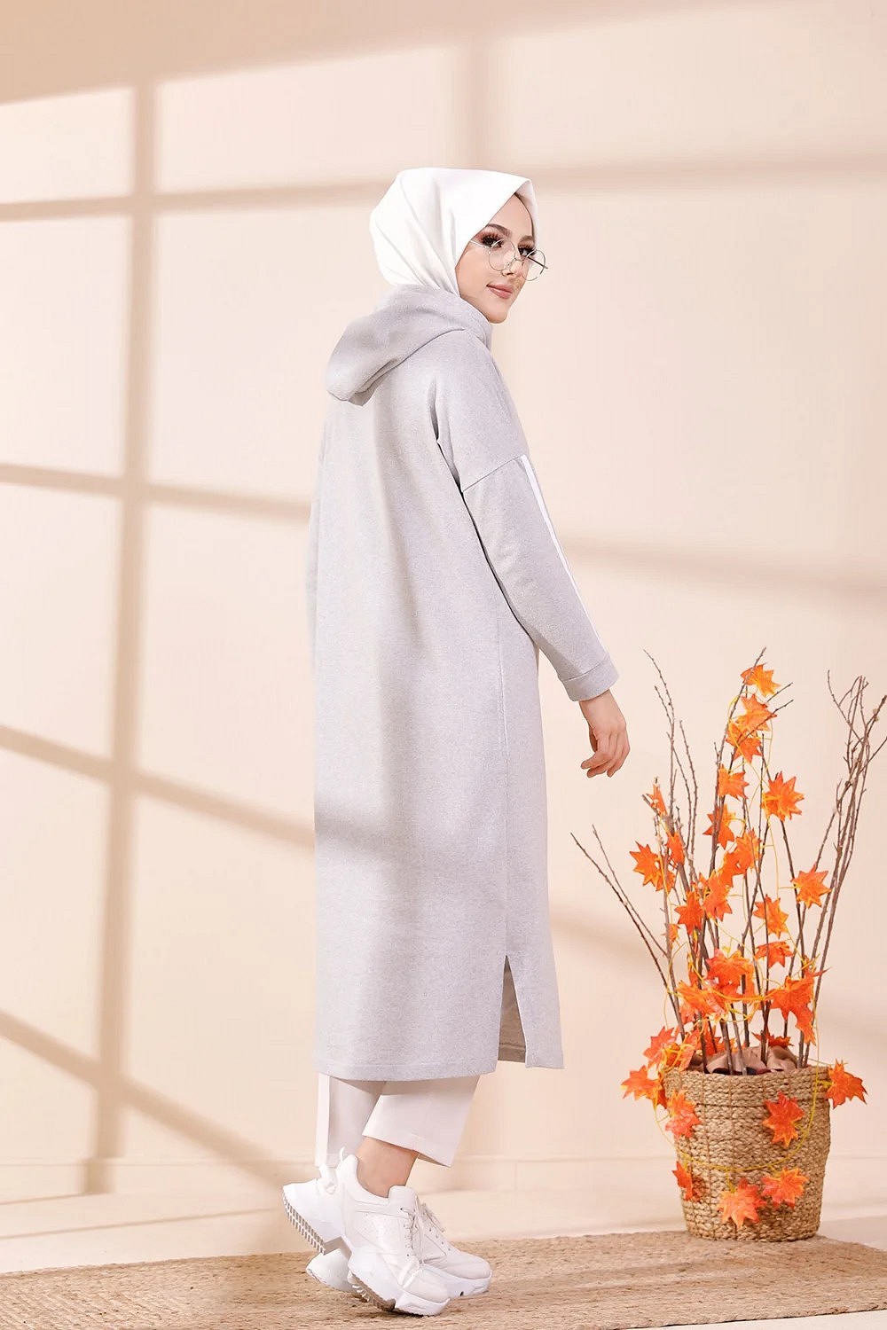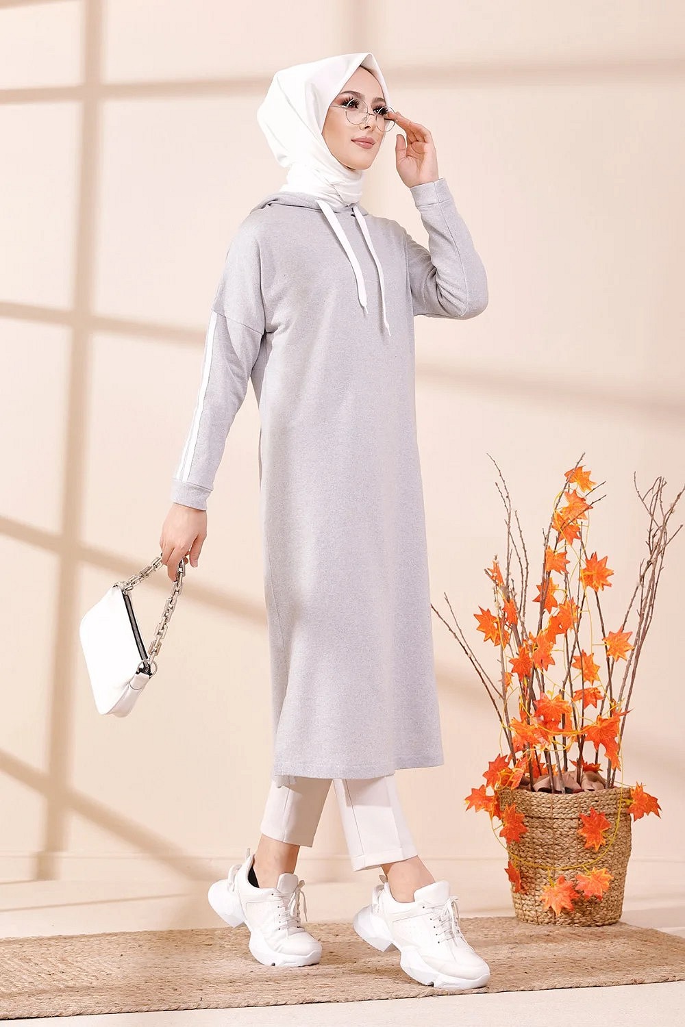 Tunique avec capuche pour femme (Vêtement décontracté mastour pour hijab) - Couleur gris Vetement & Accessoire