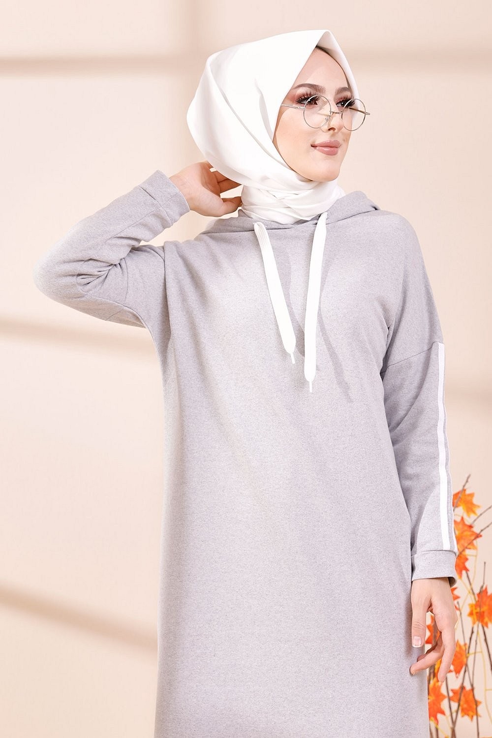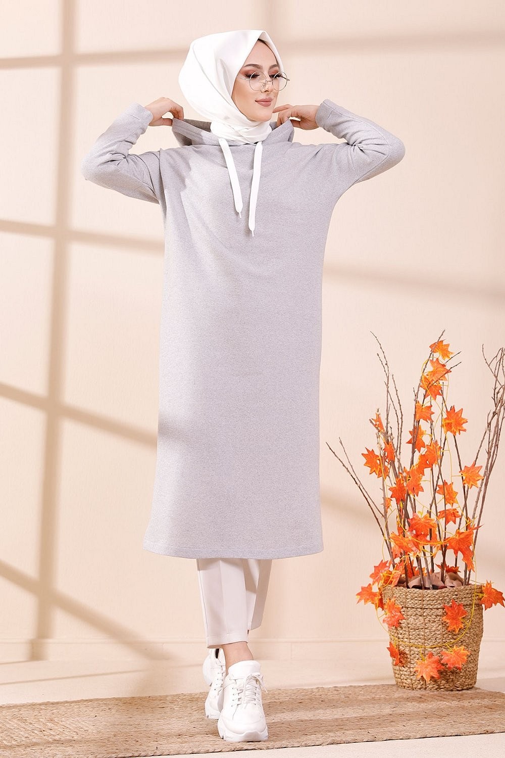 Tunique avec capuche pour femme (Vetement decontracte mastour pour hijab) - Couleur gris