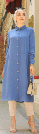 Veste longue pour femme - style chemise (Mode Musulmane) - Couleur bleu indigo - REF. 32898 (29.90 €)
