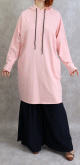 Tunique sport en coton - Sweats femmes - Pull long avec capuche - Couleur Rose clair - REF. 31758 (28.00 €)