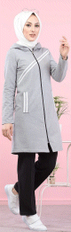 Veste sweat longue à capuche pour hijab sport - Couleur gris clair - REF. 32755 (25.00 €) - En Promotion à 21.90 €