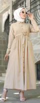 Robe chemise longue avec ceinture et grandes poches (Tenue ample pour femme voilée) - Couleur beige