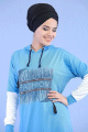 Tunique manches ballon (Vetement hijab habillé pour femme) - Couleur bleu pétrole - REF. 35923 (19.90 €)