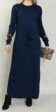 Robe longue tricotée pour femme (Modest Fashion - Automne Hiver) - Couleur bleue marine - REF. 32280 (19.90 €) - En Promotion à 16.90 €