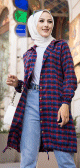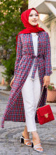 Chemise longue (Modest Fashion 2025 pas cher) - Tunique à carreaux bleu et rouge - REF. 33965 (19.90 €)