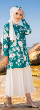 Tunique Chemise imprimée motifs fleurs (Vetement femme voilée) - Couleur vert émeraude - REF. 34698 (16.90 €)