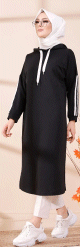 Tunique décontractée avec capuche pour femme (Vetement hijab sport) - Couleur noir - REF. 35560 (23.00 €)