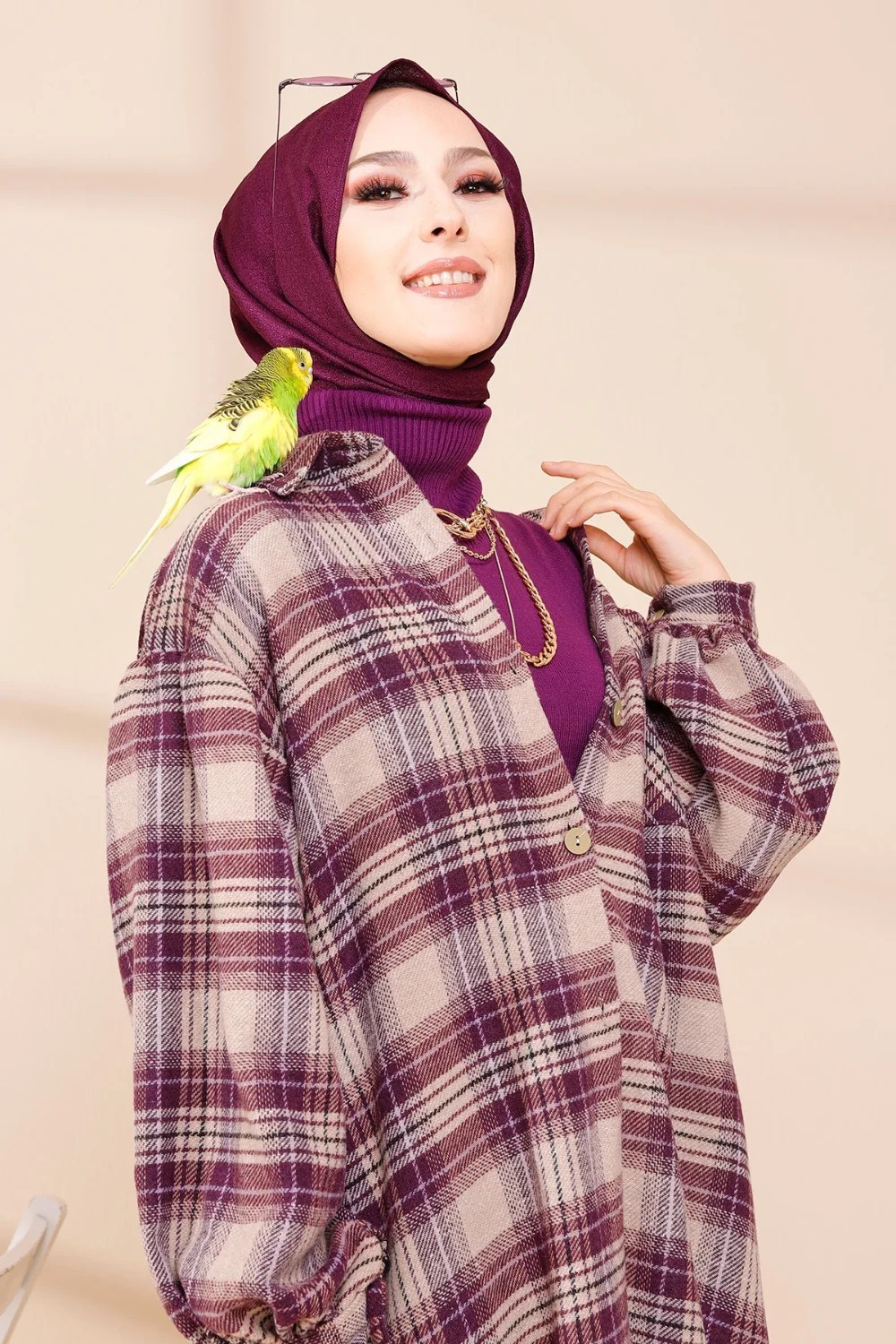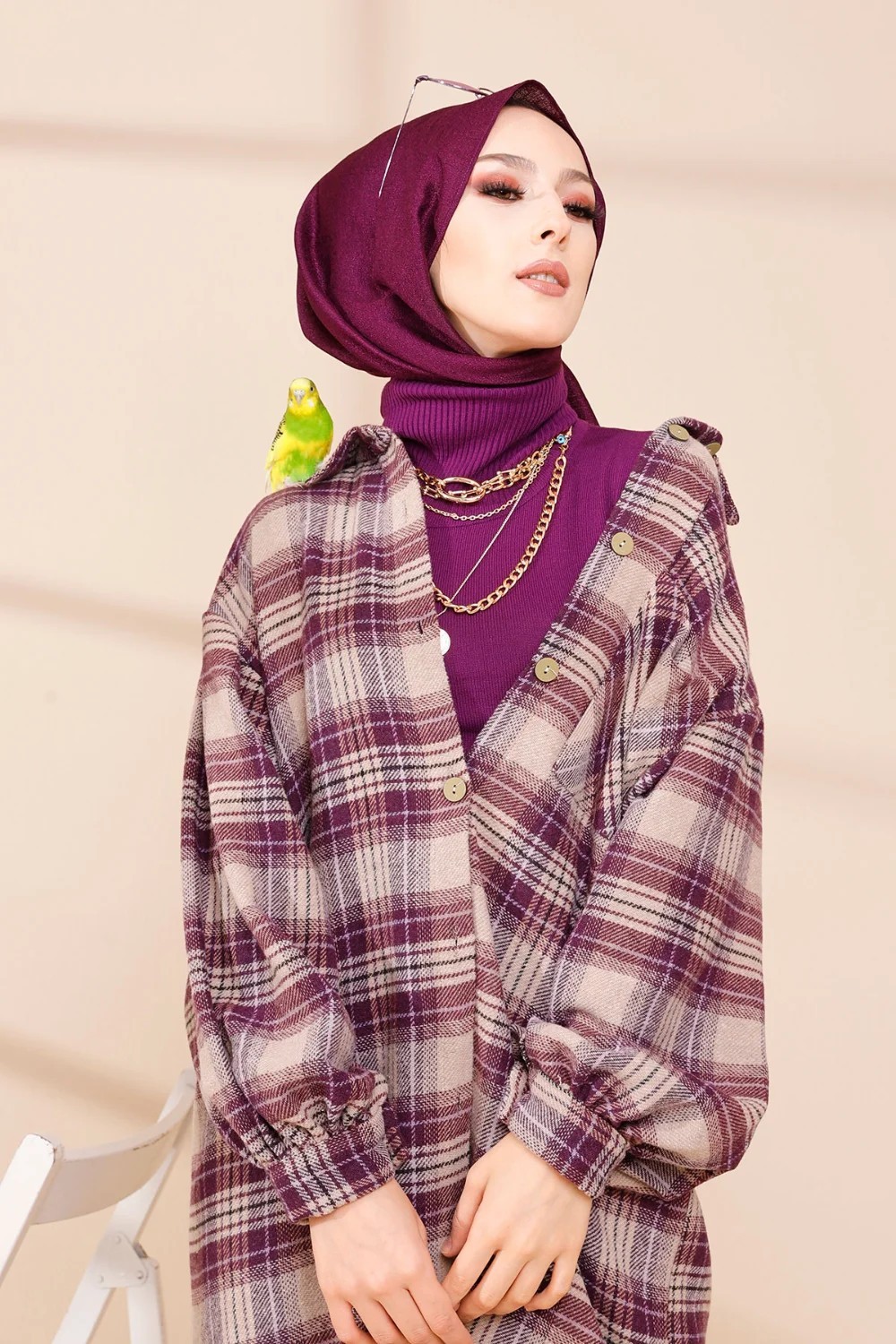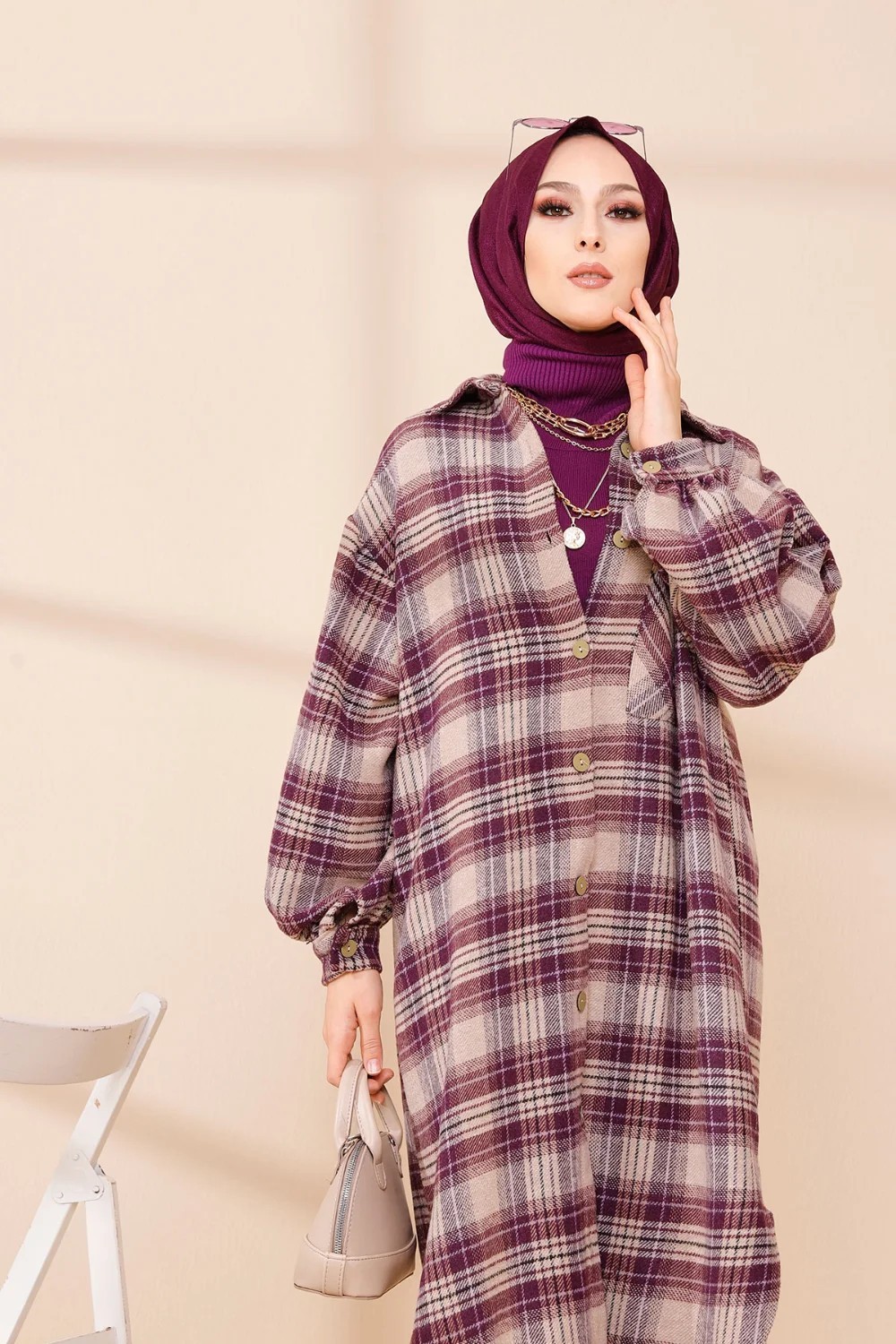 Surchemise longue et ample à carreaux (Mode pudique Mouslima) - Couleur prune Vetement & Accessoire