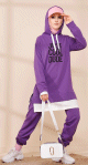 Survêtement décontracté avec extension blanche - Sweat à capuche imprimé et pantalon (Boutique de vêtement pour femme voilée) - Couleur violet - REF. 35674 (29.90 €)