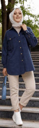Tunique-Chemise casual pour femme avec deux grandes poches - Couleur bleu marine - REF. 35744 (24.90 €)