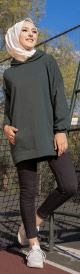 Veste-Tunique zippée à capuche (Tenue Hijab Automne Hiver) - Couleur anthracite et kaki - REF. 35273 (26.00 €)