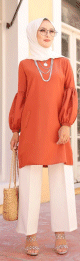 Tunique casual à manches ballon (Vêtement style habillé pour femme voilée) - Couleur brique - REF. 35905 (19.90 €)