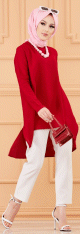 Tunique ample évasée boutonnée (Vetement style habillé pour femme voilée) - Couleur Rouge Bordeaux - REF. 33821 (22.00 €)