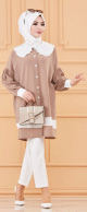 Tunique style habillé (Vêtement chic pour femme voilée) - Couleur taupe et blanc - REF. 36572 (29.90 €)